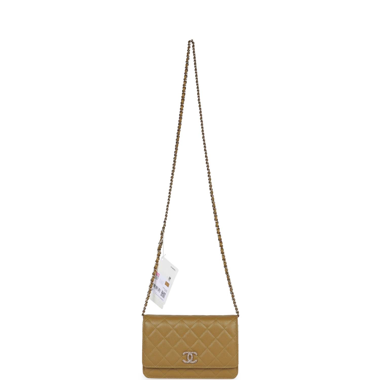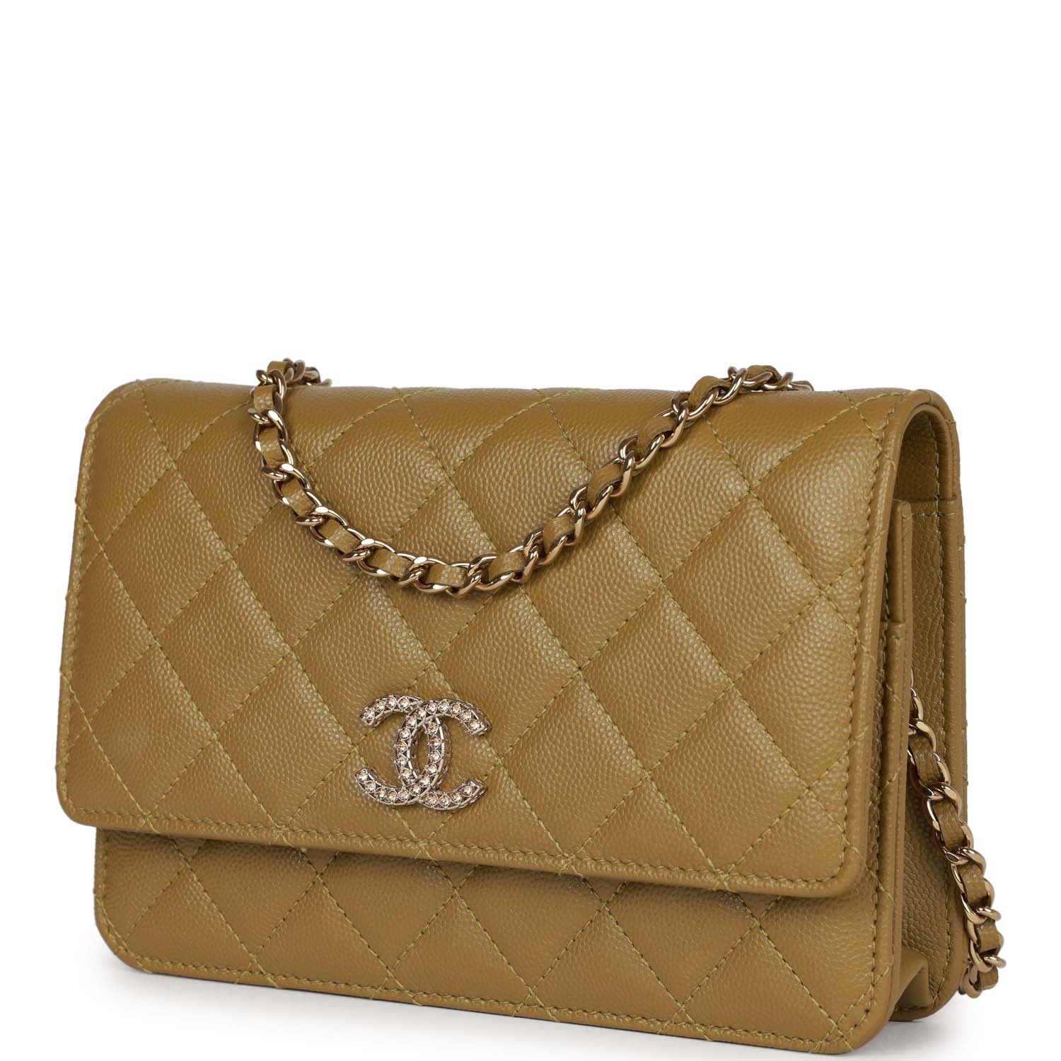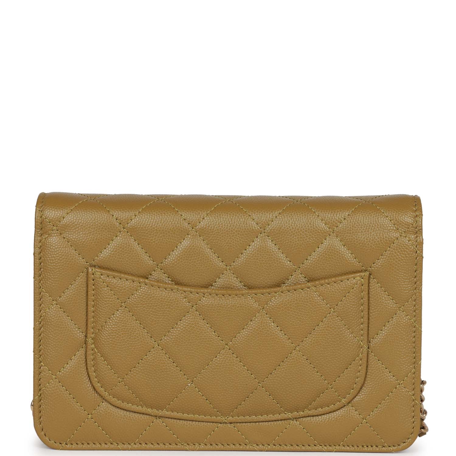 • Chanel Wallet on Chain WOC Olive Green Caviar Light Gold Hardware