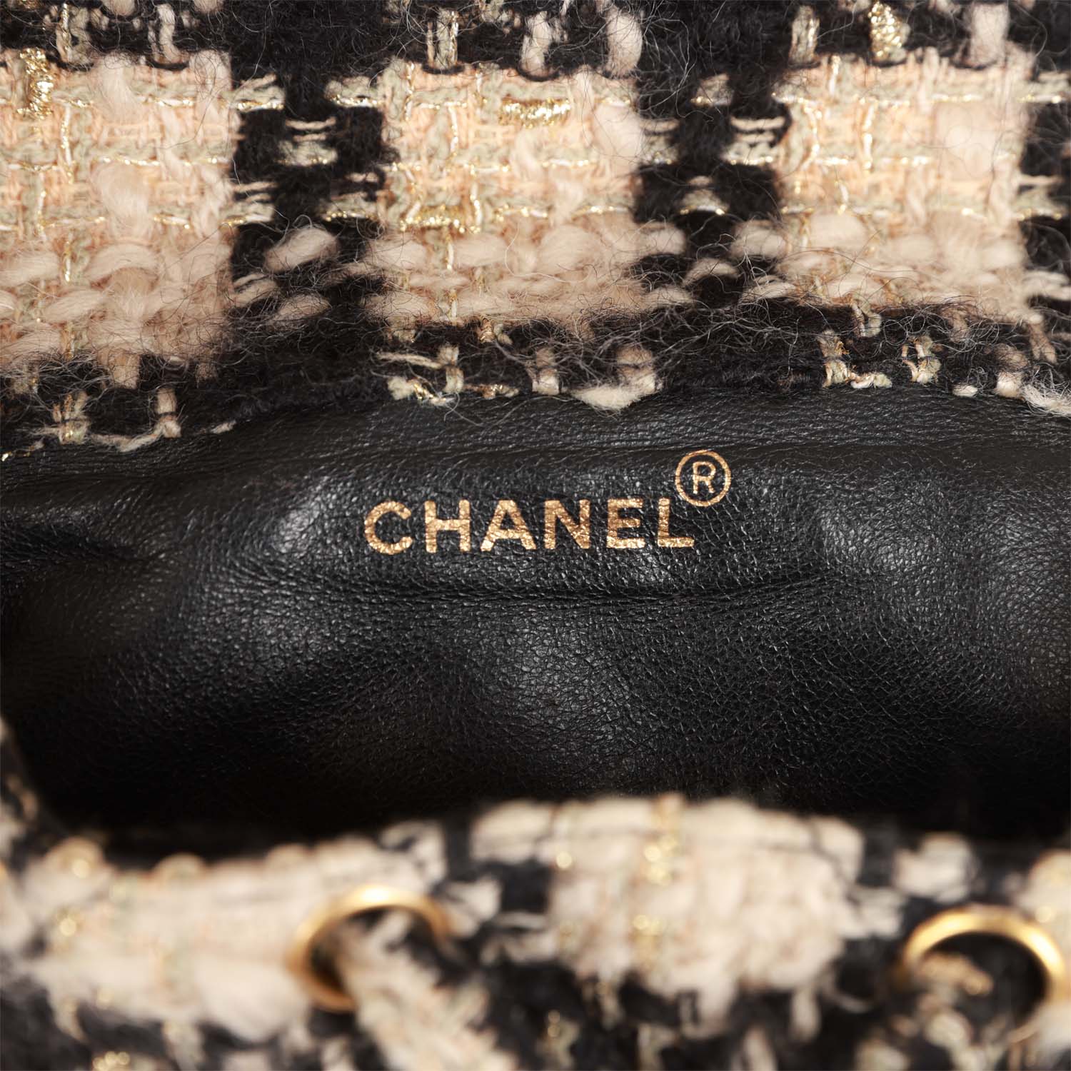 • Vintage Chanel Duma Backpack Beige and Black Tweed Gold Hardware