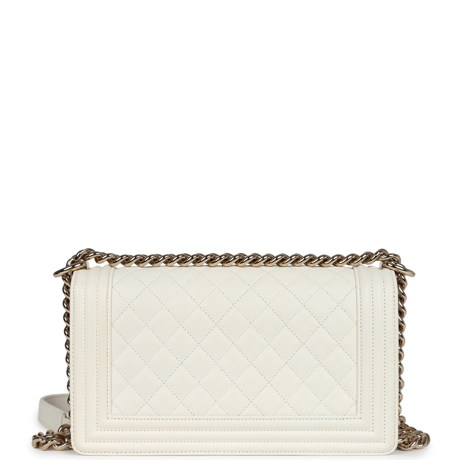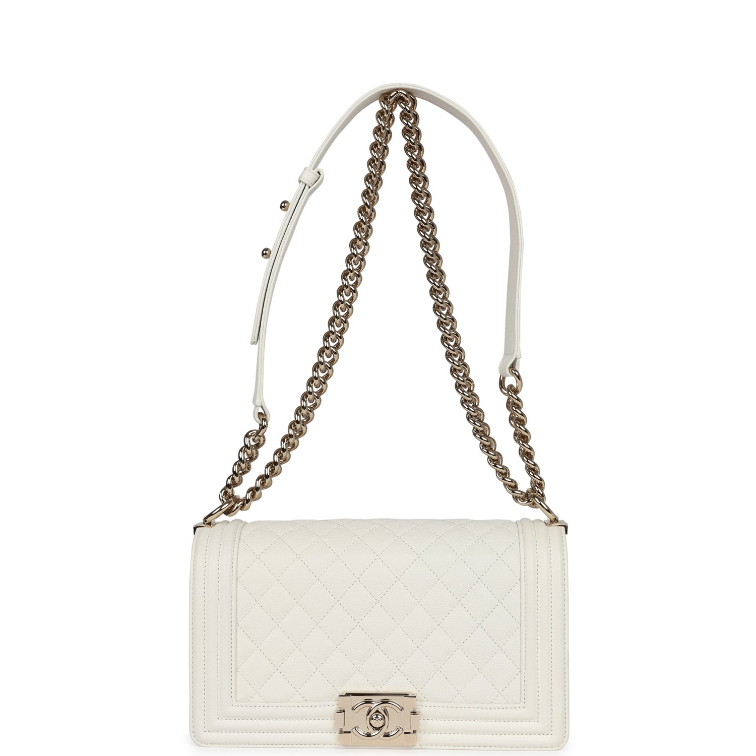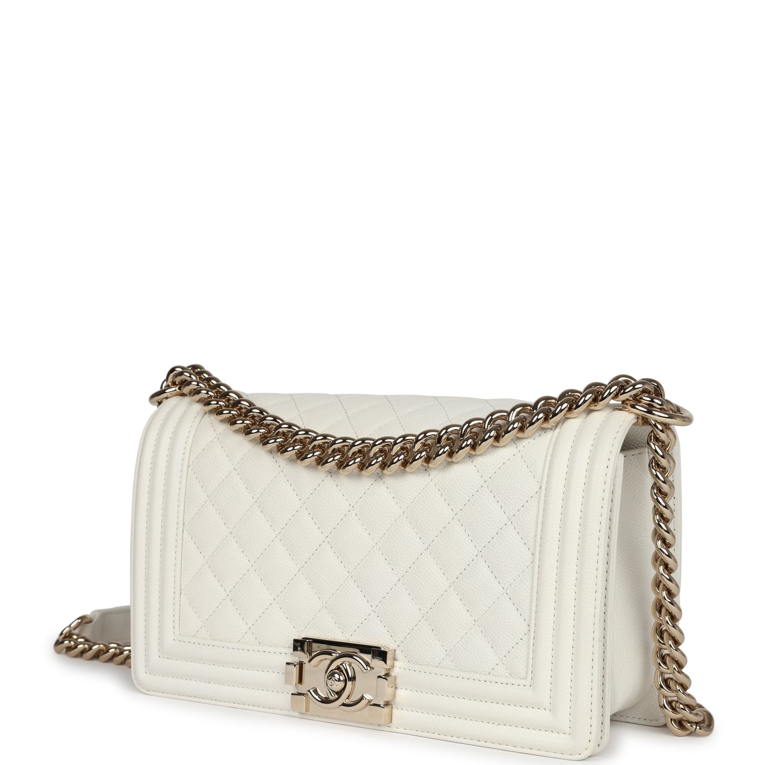 Chanel Medium Boy Bag White Caviar Light Gold Hardware