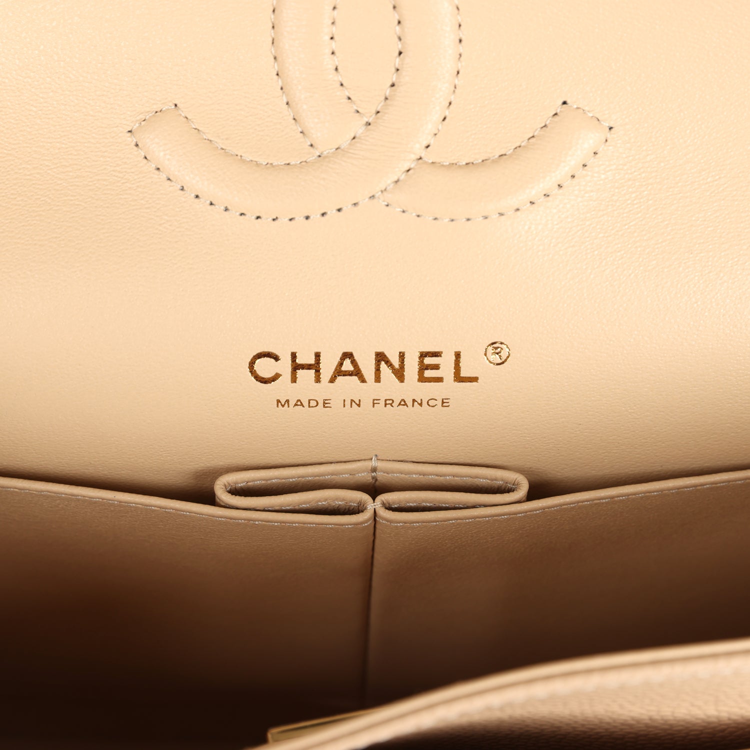 Chanel Medium Classic Double Flap Beige Caviar Gold Hardware