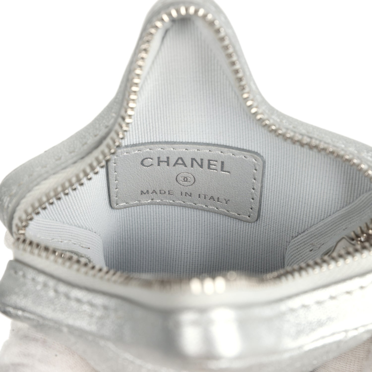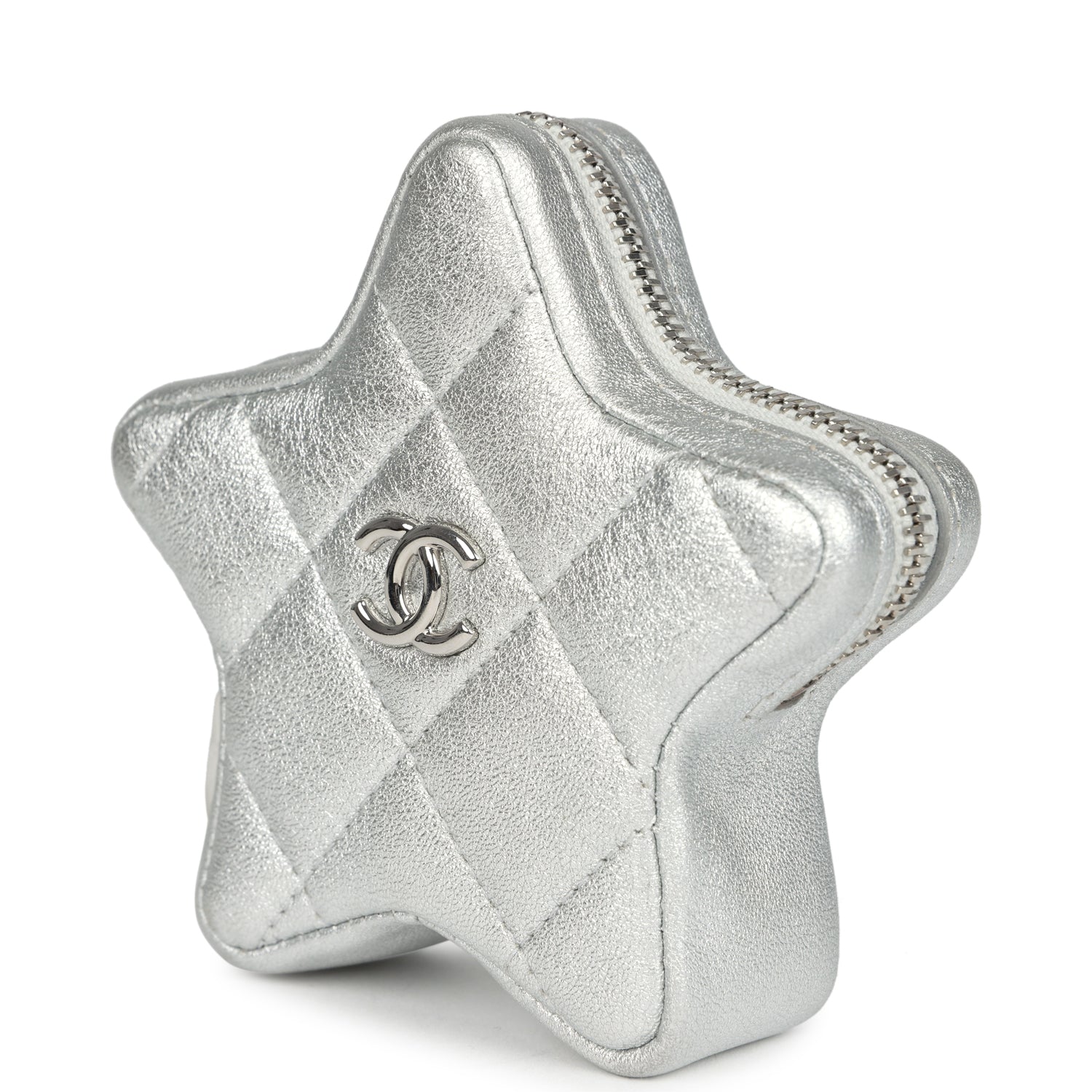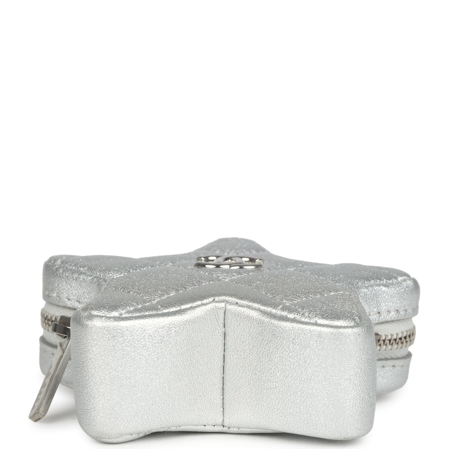 Chanel Walk Of Fame Star Clip-On Coin Purse Metallic Silver Goatskin Silver Hardware