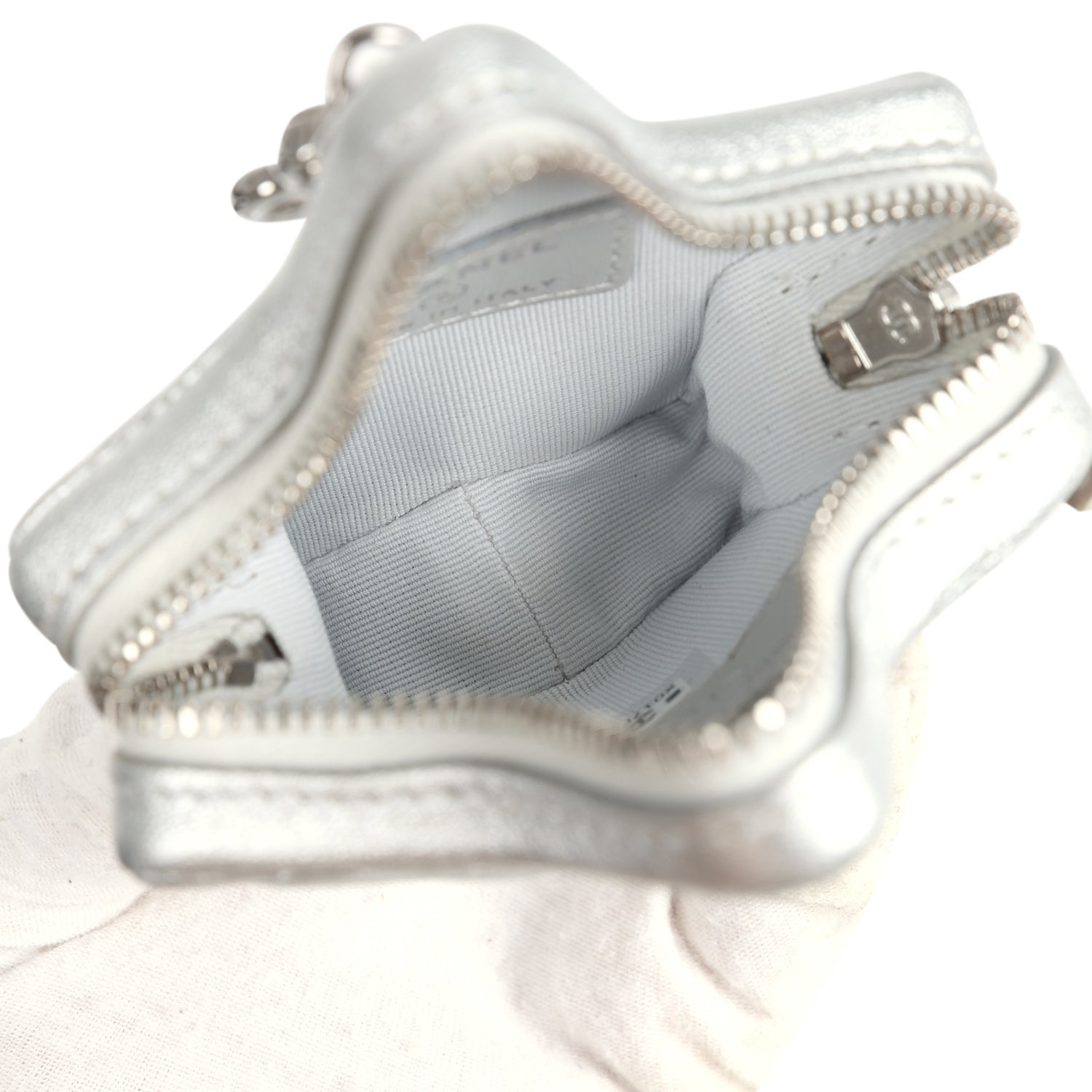 • Chanel Walk Of Fame Star Clip-On Coin Purse Metallic Silver Goatskin Silver Hardware