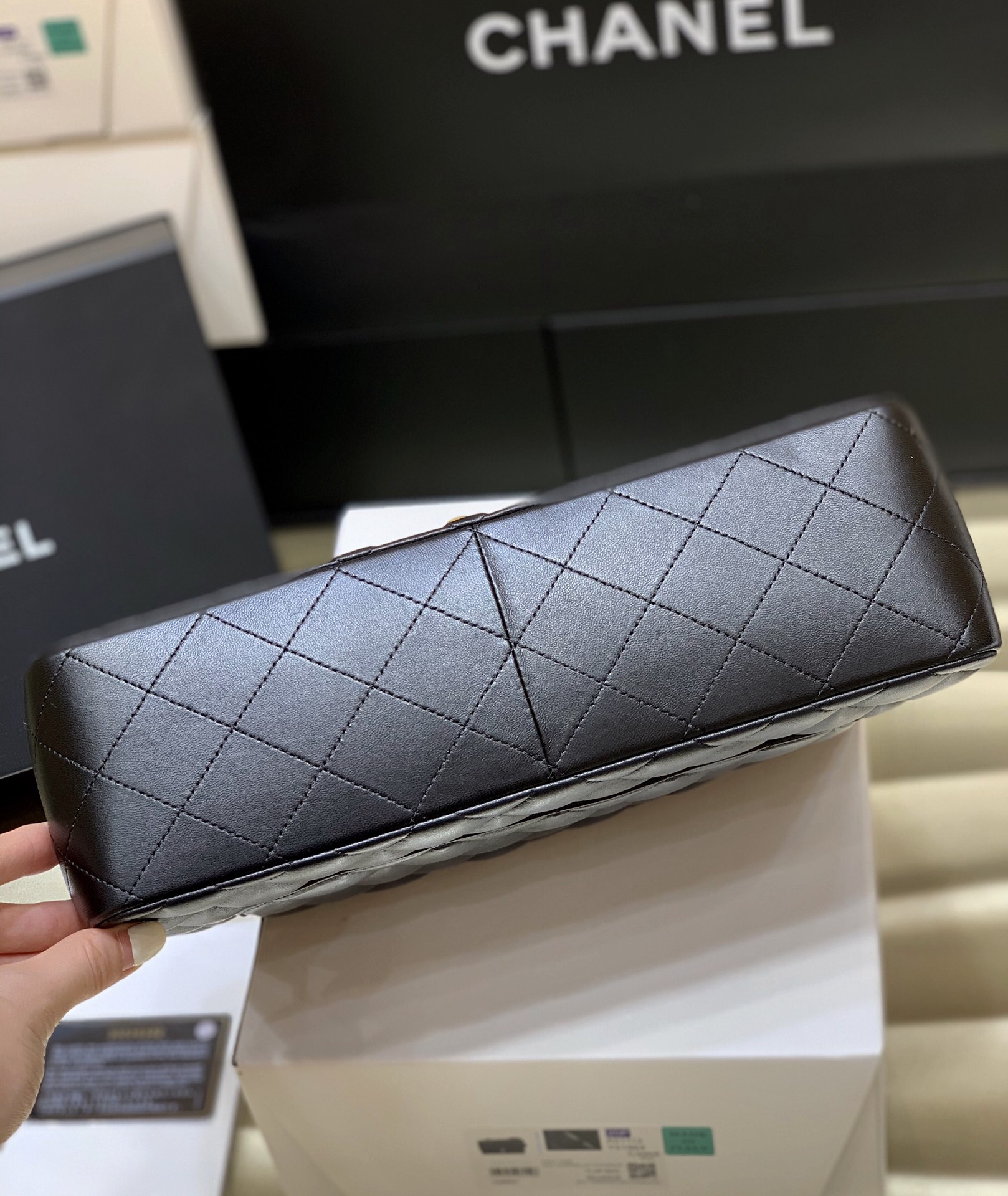 Ch@nel Flap Bag-Lambskin-Gold-30CM