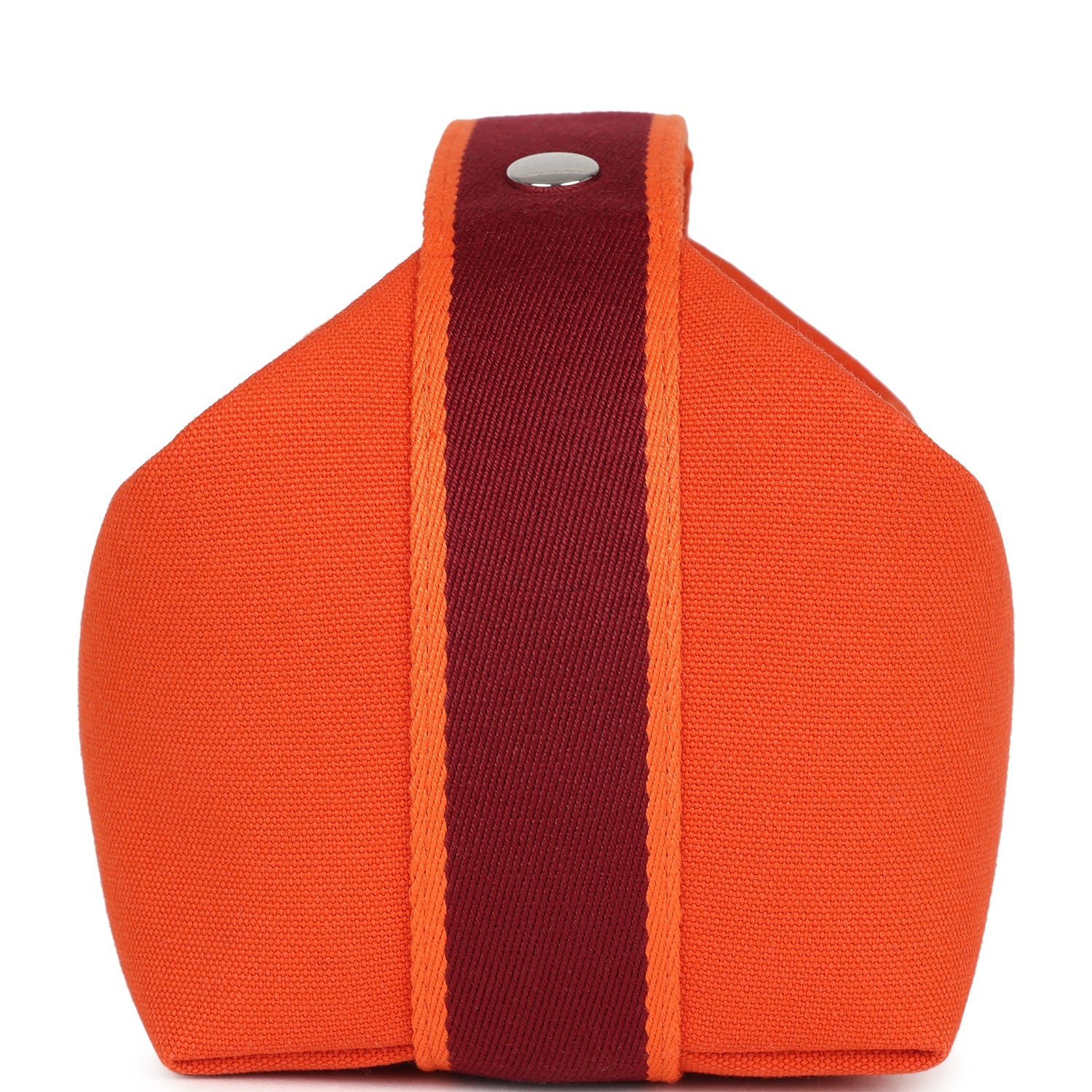 This Bride A Brac Carre Case PM is of Feu canvas with paladium hardware, features small pouch, Anti-stain waterproof lining, embroidered "H" on the front, tonal stitching, zippered closure, snap closure top handle.