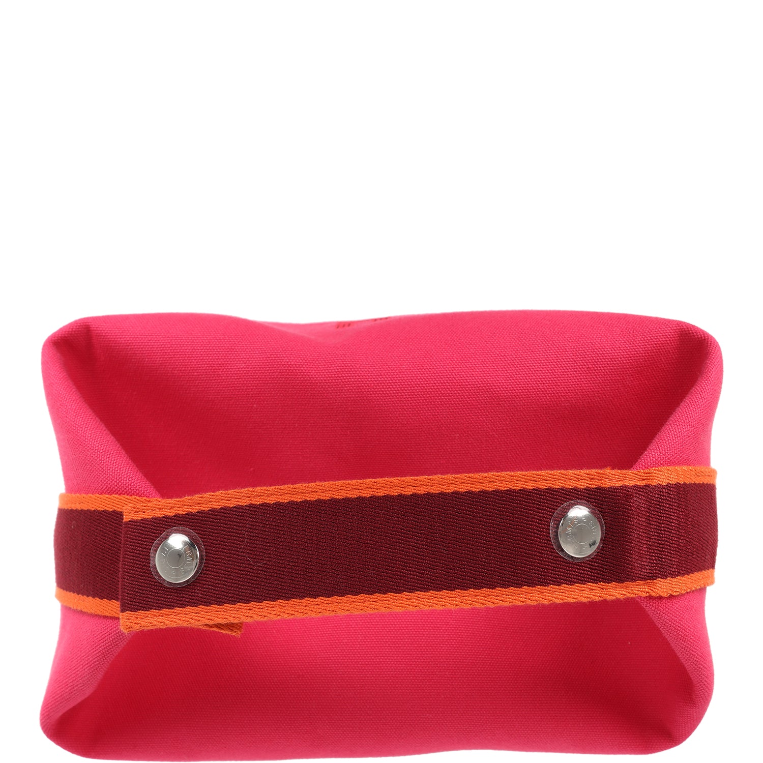 This Bride A Brac Carre Case GM is of Hibiscus Canvas with palladium hardware, features large pouch, anti-stain waterproof lining, embroidered "H" on the front, tonal stitching, zippered closure, snap closure top handle.