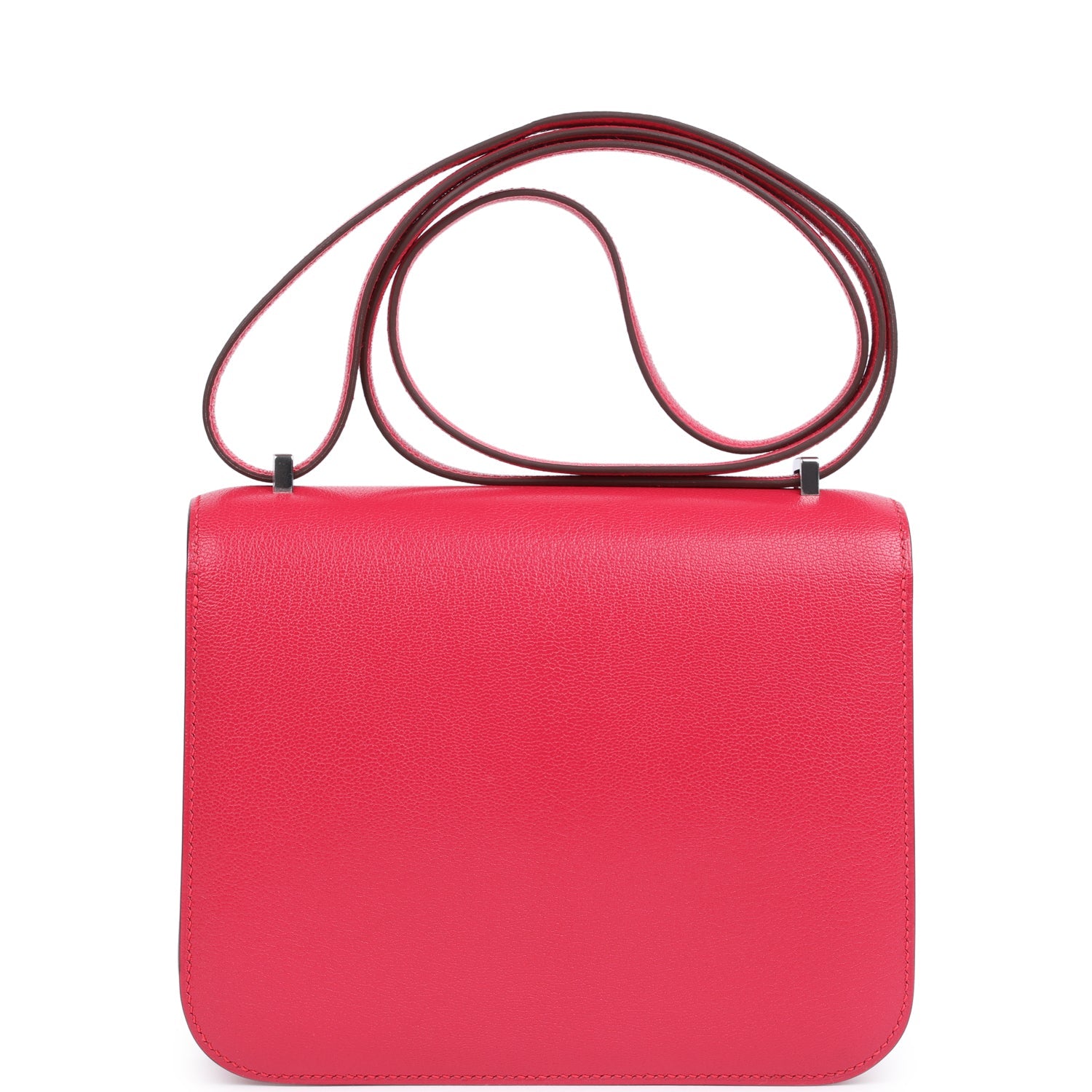 This Constance 1-18 is in Rose Extreme Chevre Chamkila leather with palladium hardware and has tonal stitching, a metal "H" snap lock closure and adjustable shoulder strap.