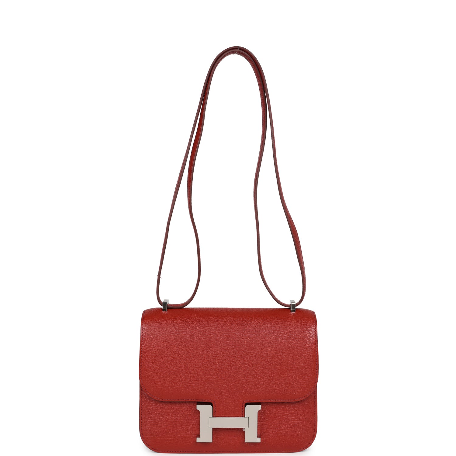 This Constance 1-18 Verso is in Brique and Rose Azalee chevre mysore leather with palladium hardware and has tonal stitching, a palladium "H" snap lock closure and adjustable shoulder strap.
