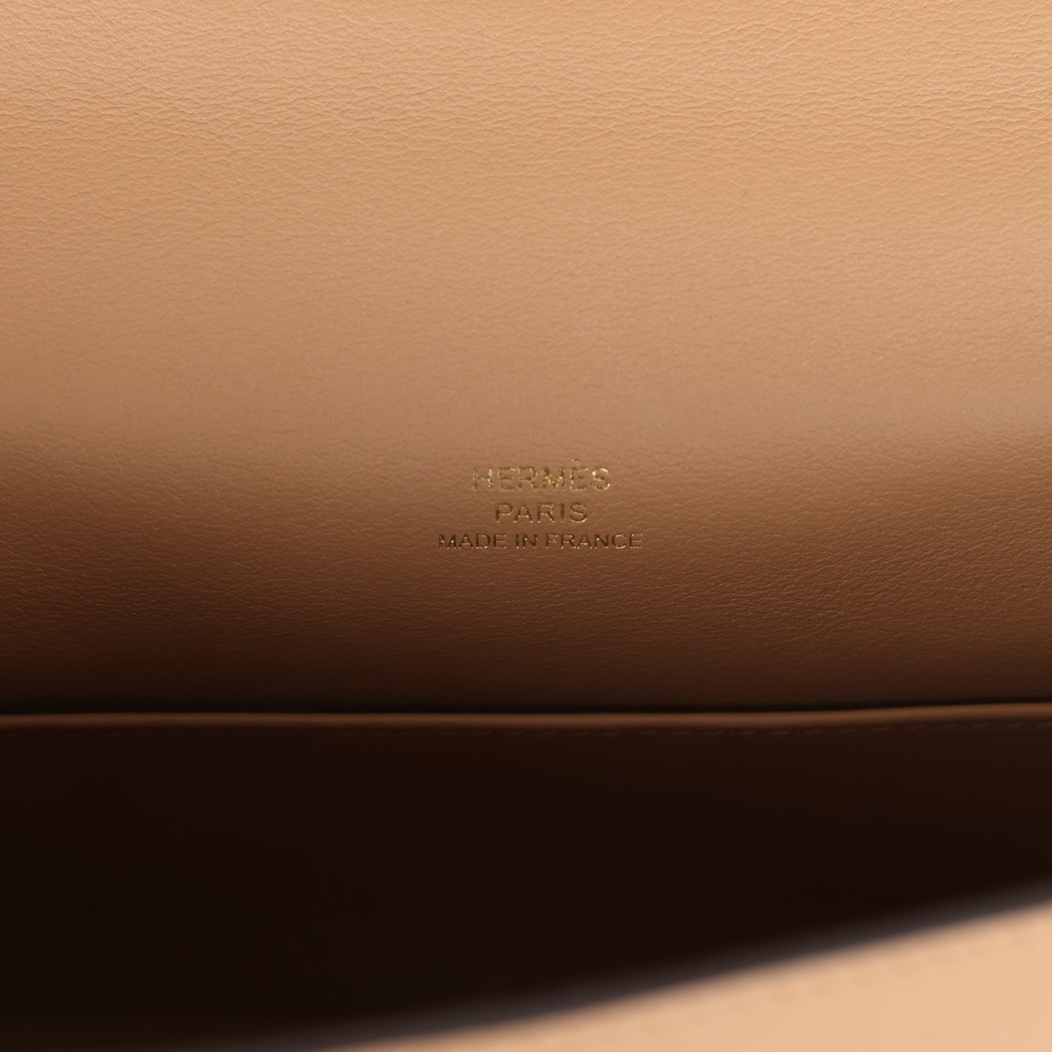 This Mini Kelly Pochette is in is in Chai swift leather with gold hardware and has tonal stitching, front flap, two straps with center toggle closure and a top flat handle.