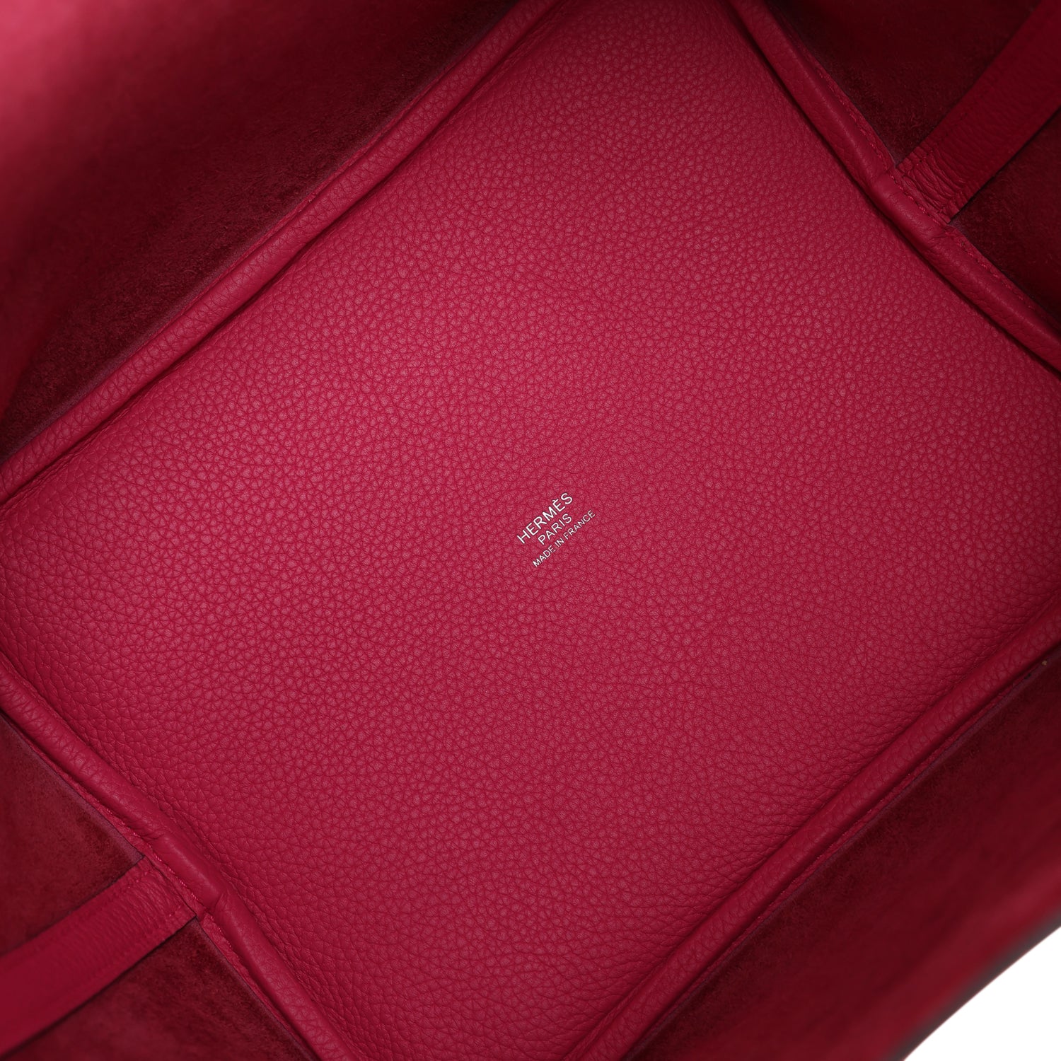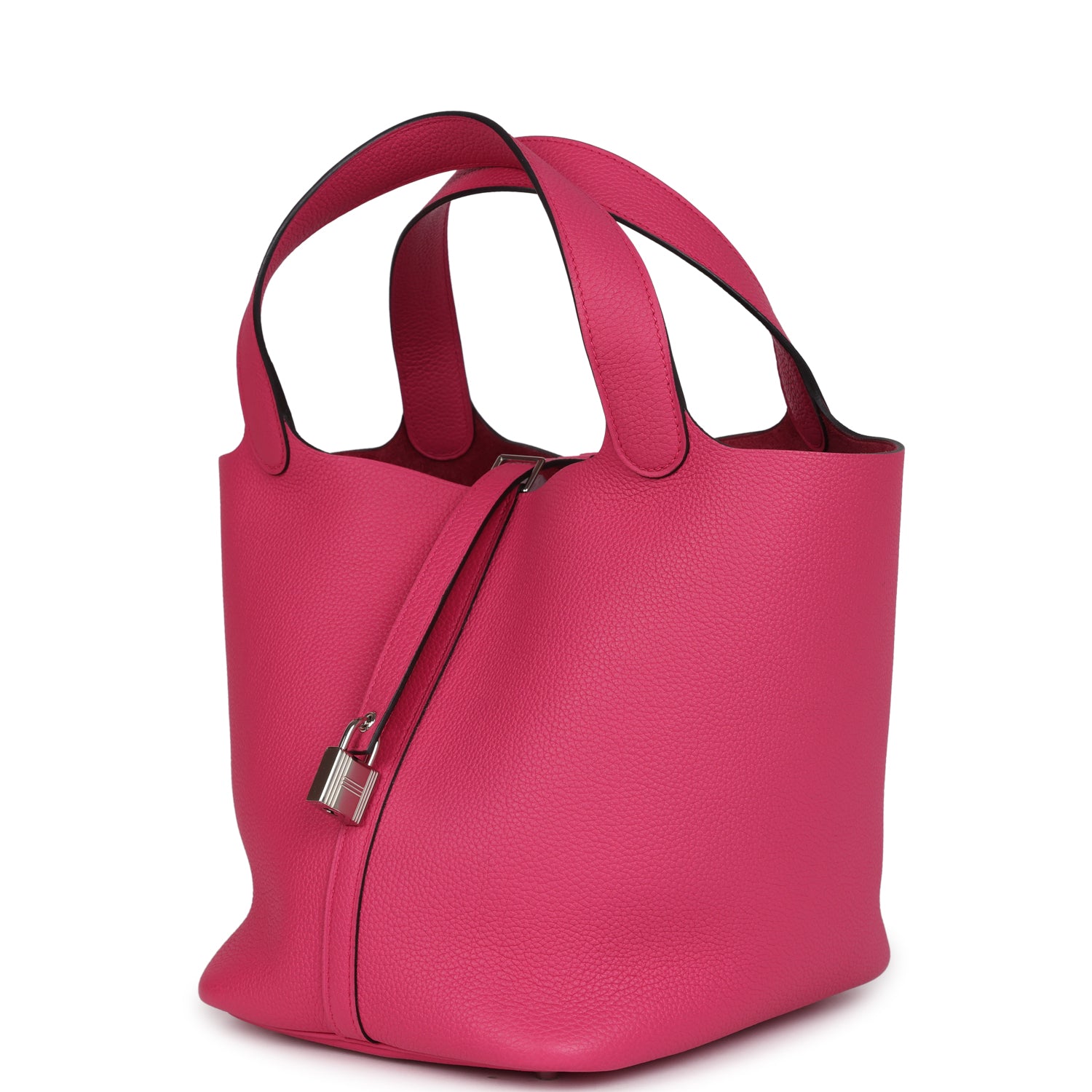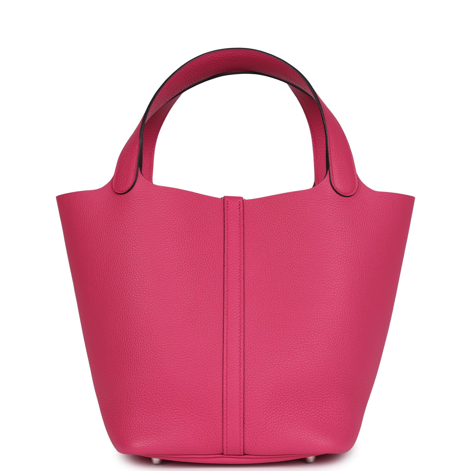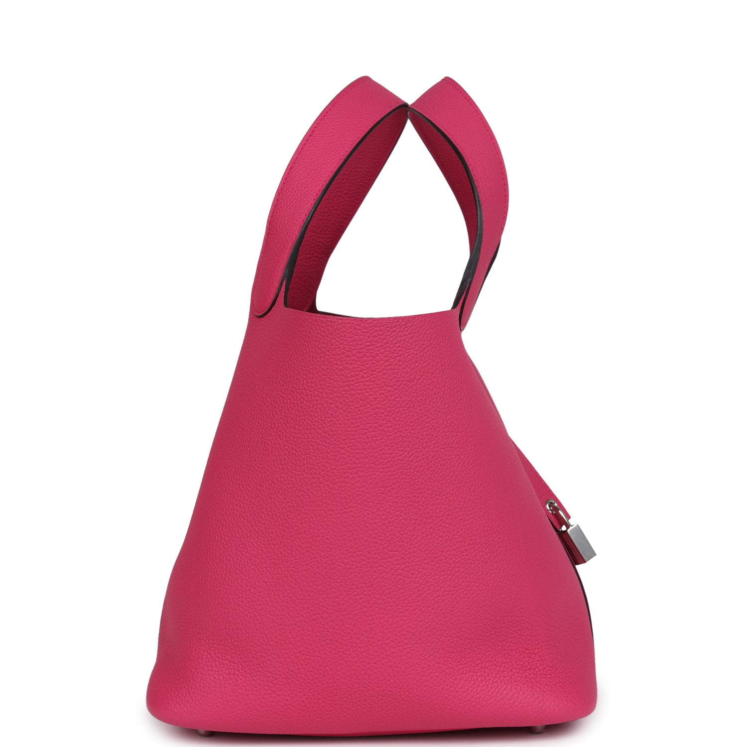 This Picotin is in Rose Shocking Maurice Taurillon leather with palladium hardware and has tonal stitching with two top handles.