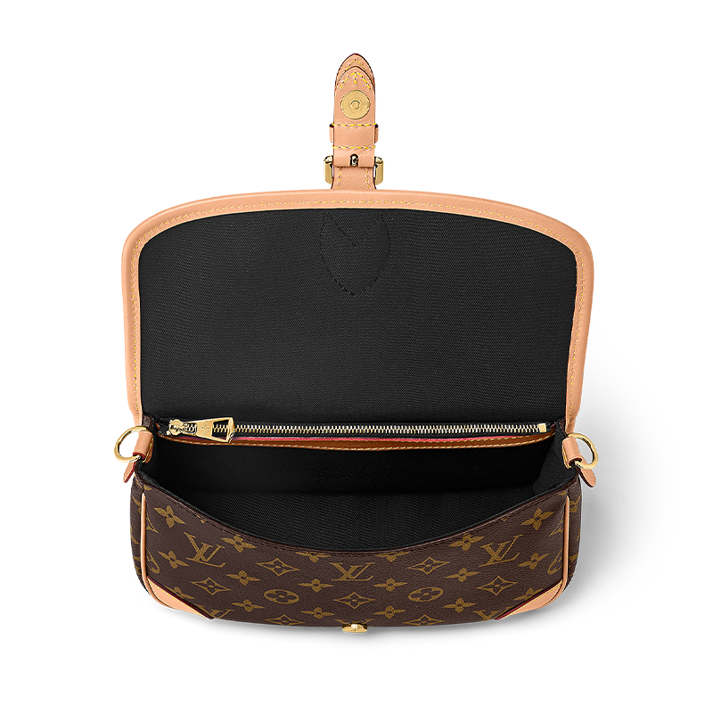 The Diane satchel in Monogram canvas revisits a classic model from the 90s, combining such vintage details as leather corners and an archival-inspired buckle with the modern functionality of smart pockets and a well-organized interior. The exclusive wide jacquard strap reverses from a bold Louis Vuitton signature to a subtle Monogram Flower motif.