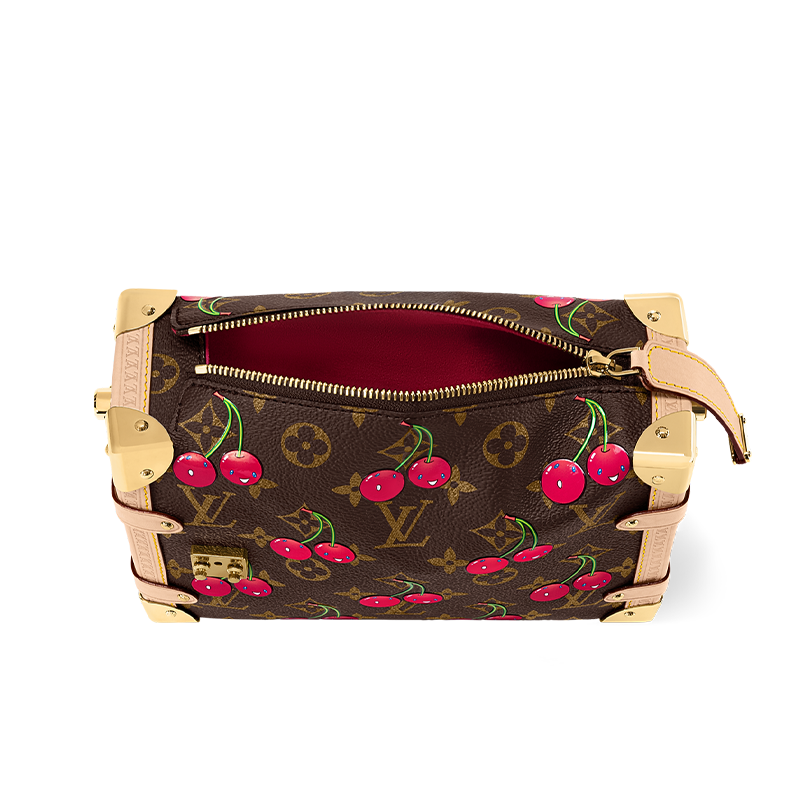 Reflecting the playful spirit of the celebratory re-edition of the Louis Vuitton x Murakami collection, the Side Trunk MM is crafted from classic Monogram coated canvas adorned with luscious cherry motifs in the Japanese artist’s exuberant aesthetic. Natural cowhide leather trims and golden hardware pay homage to the House’s travel heritage, including riveted corners and an S-lock closure.