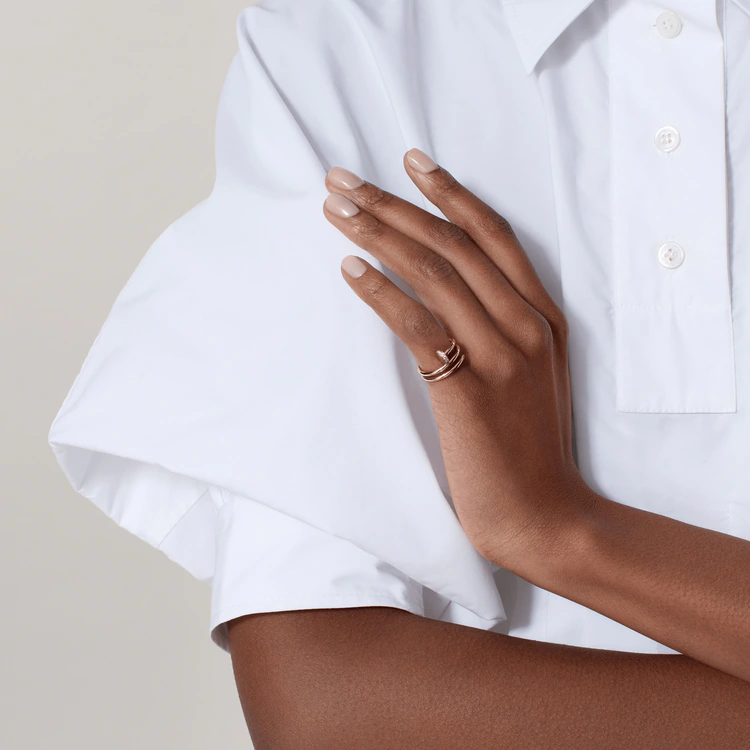 Juste un Clou ring, 18K rose gold (750/1000), set with 14 brilliant-cut diamonds totaling 0.08 carats. Width: 1.8 mm (for size 52).