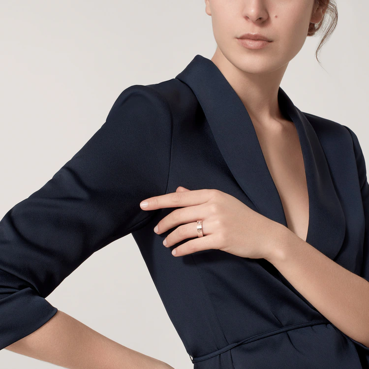 LOVE ring, 18K rose gold (750/1000), set with 3 brilliant-cut diamonds totaling 0.22 carats. Width: 5.5 mm (for size 52).