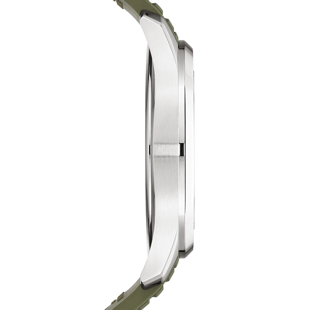 Patek Philippe reinterprets the quartz Aquanaut Luce in stainless steel with a larger diameter (38.8 mm) and a new integrated composite strap. This epitome of contemporary casual chic is attired in a bold khaki-green colour adorning the dial and matching strap. Water-resistant to 120m, the rounded octagonal case is enhanced by polished and satin finishes. The bezel is lit up by a row of 48 diamonds (~1.11 ct). The patented folding clasp is secured by four independent catches.