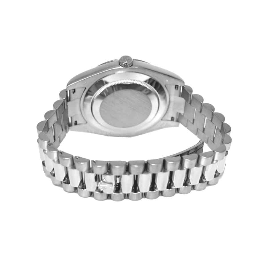 The Rolex Day-Date II 218239 V6 Stainless Steel White Dial Replica is a stunning watch. It features a 904L stainless steel case and bezel. with a sapphire crystal and adjustable links for all sizes. The white dial is adorned with Roman numerals and 904L stainless steel stick hands. The movement is an automatic 3156 caliber with a 60-hour power reserve and precision within COSC certification limits.