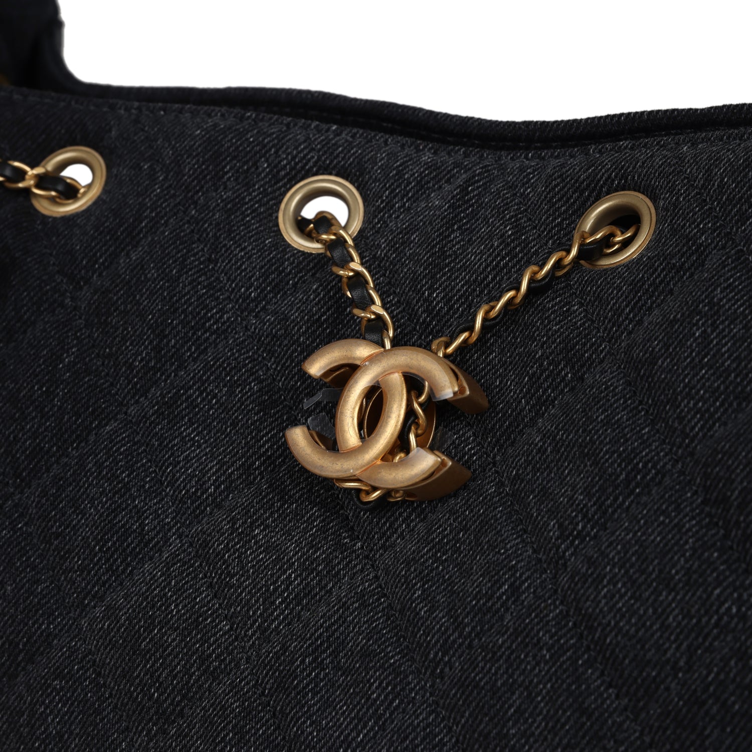 Chanel Medium 25 Hobo Bag Black Washed Denim Antique Gold Hardware