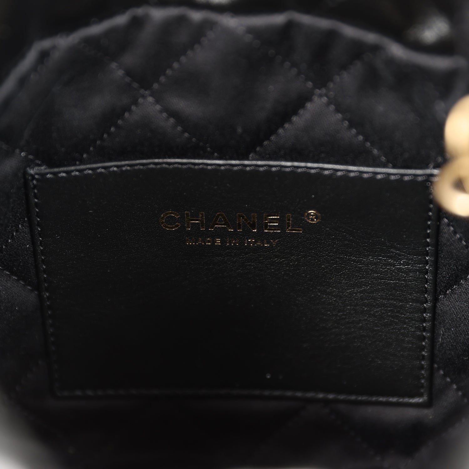 • Chanel Mini 22 Bag Black Calfskin Gold Hardware