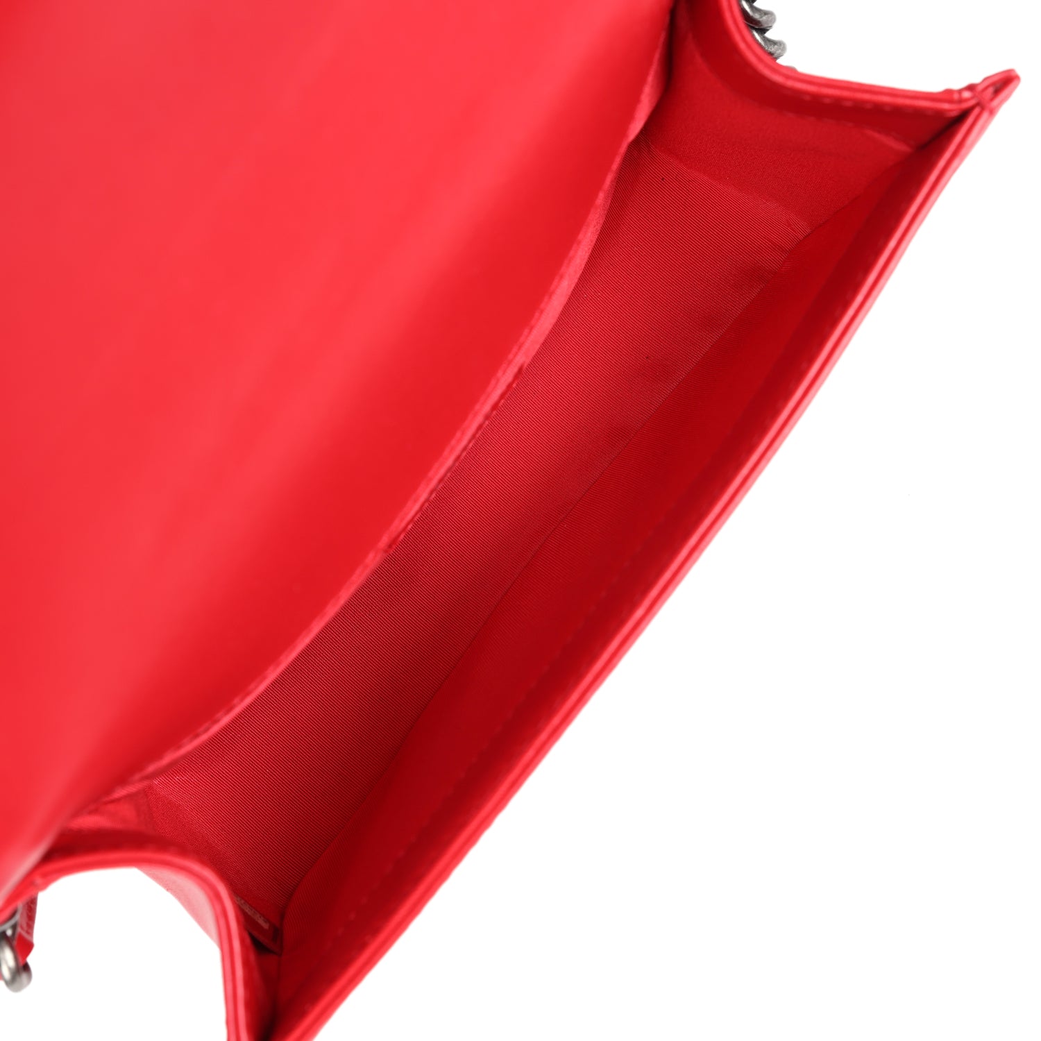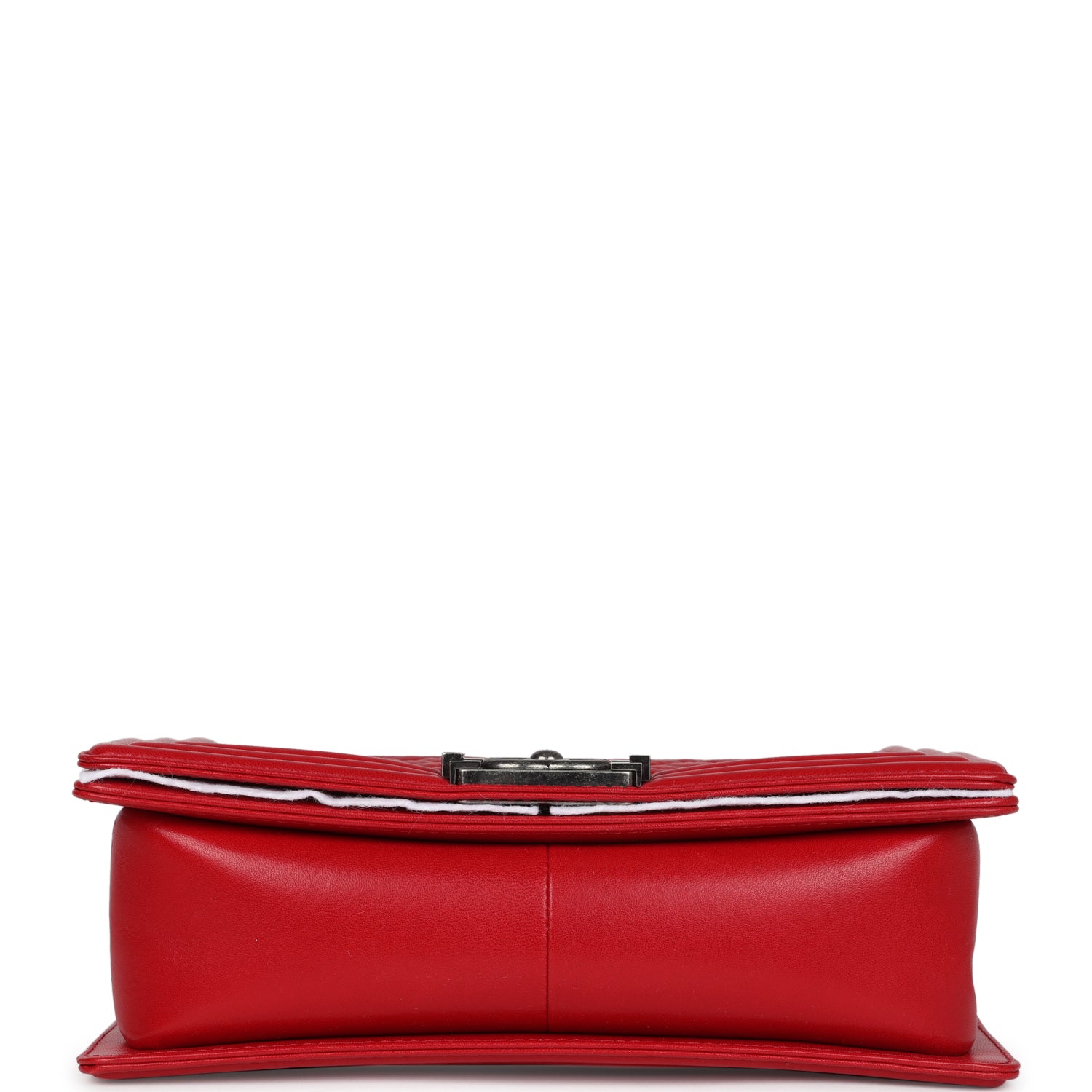 Chanel Old Medium Boy Bag Red Lambskin Aged Ruthenium Hardware