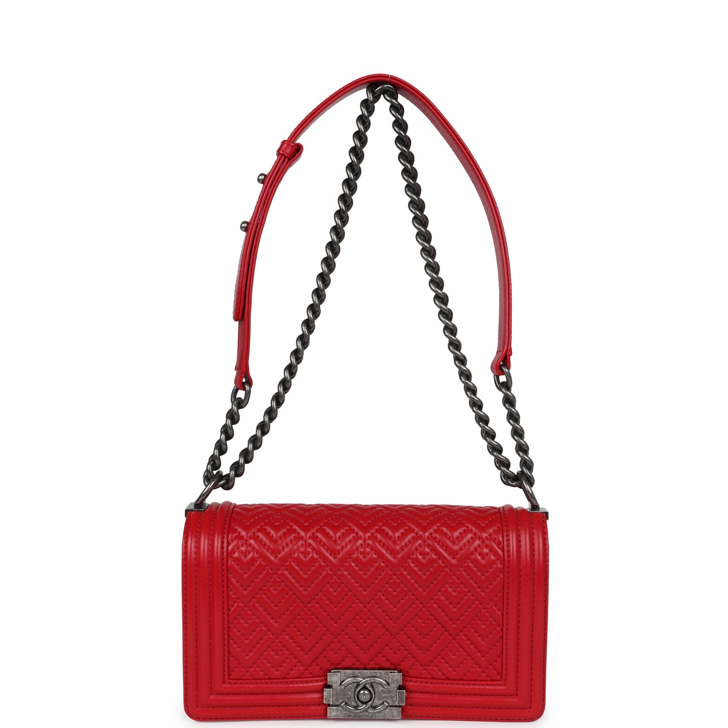 • Chanel Old Medium Boy Bag Red Lambskin Aged Ruthenium Hardware