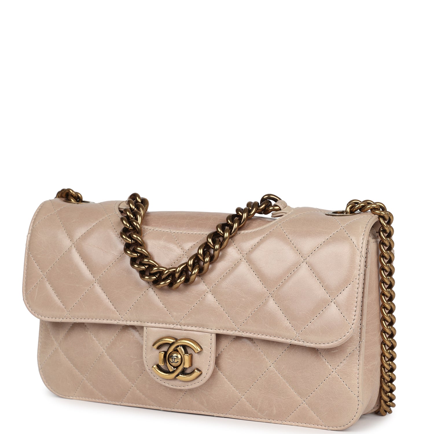 • Pre-owned Chanel Perfect Edge Flap Bag Beige Aged Calfskin Antique Gold Hardware