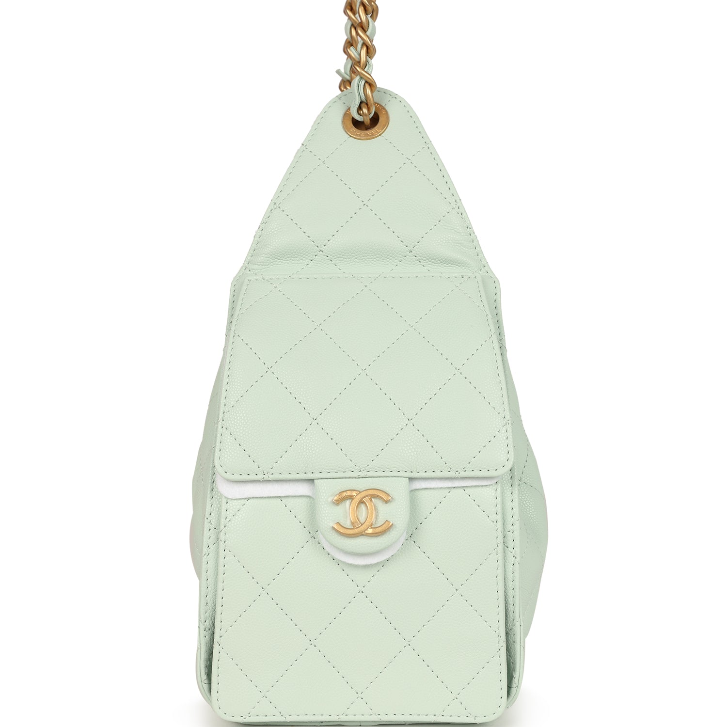 Chanel Small 25 Hobo Bag Light Green Caviar Antique Gold Hardware