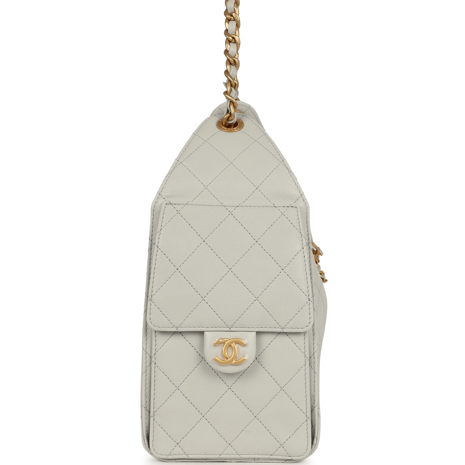 Chanel Small 25 Hobo Bag Light Grey Caviar Antique Gold Hardware