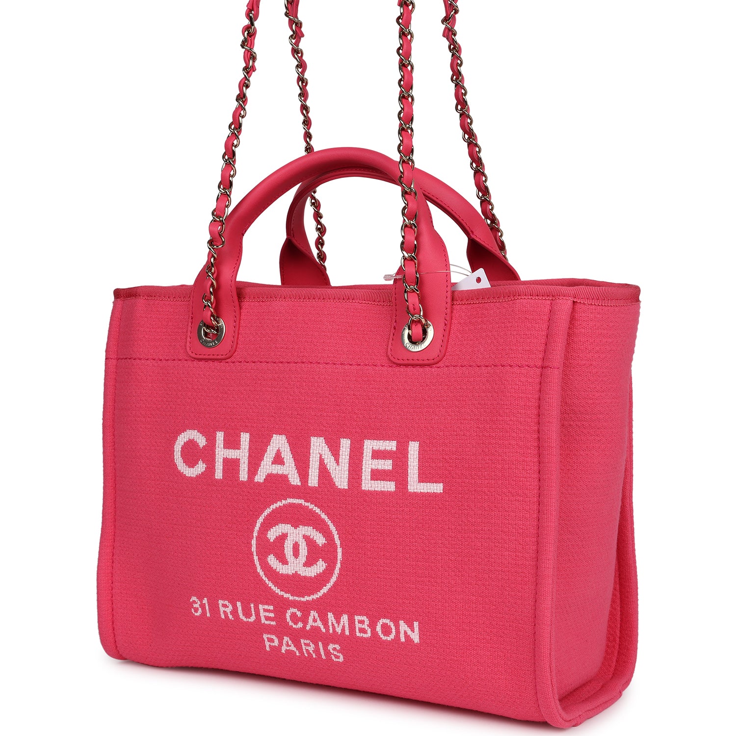 Chanel Small Deauville Shopping Tote Hot Pink Canvas Light Gold Hardware