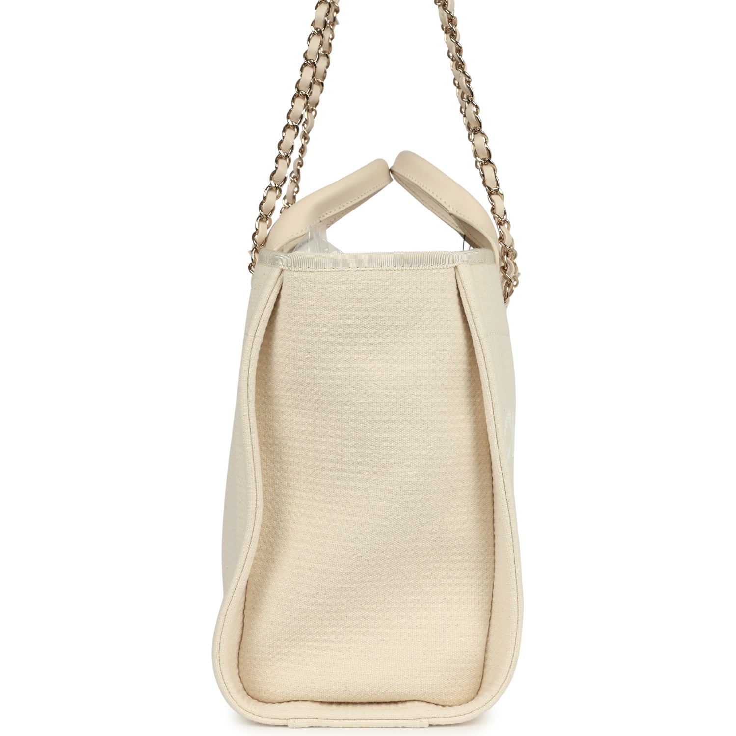 Chanel Small Deauville Shopping Tote Ivory Canvas Light Gold Hardware