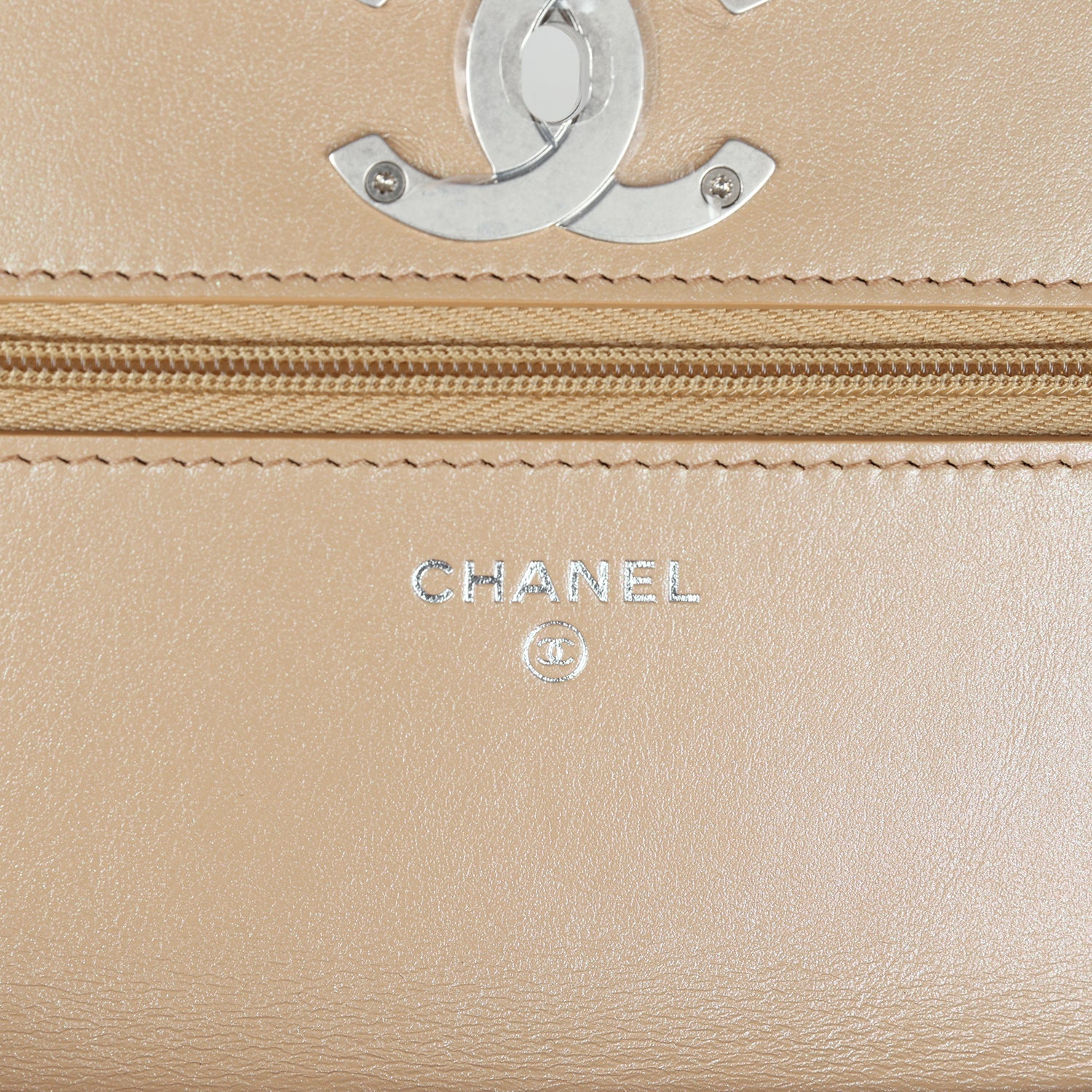 • Chanel Wallet On Chain WOC Beige Iridescent Caviar Silver Hardware