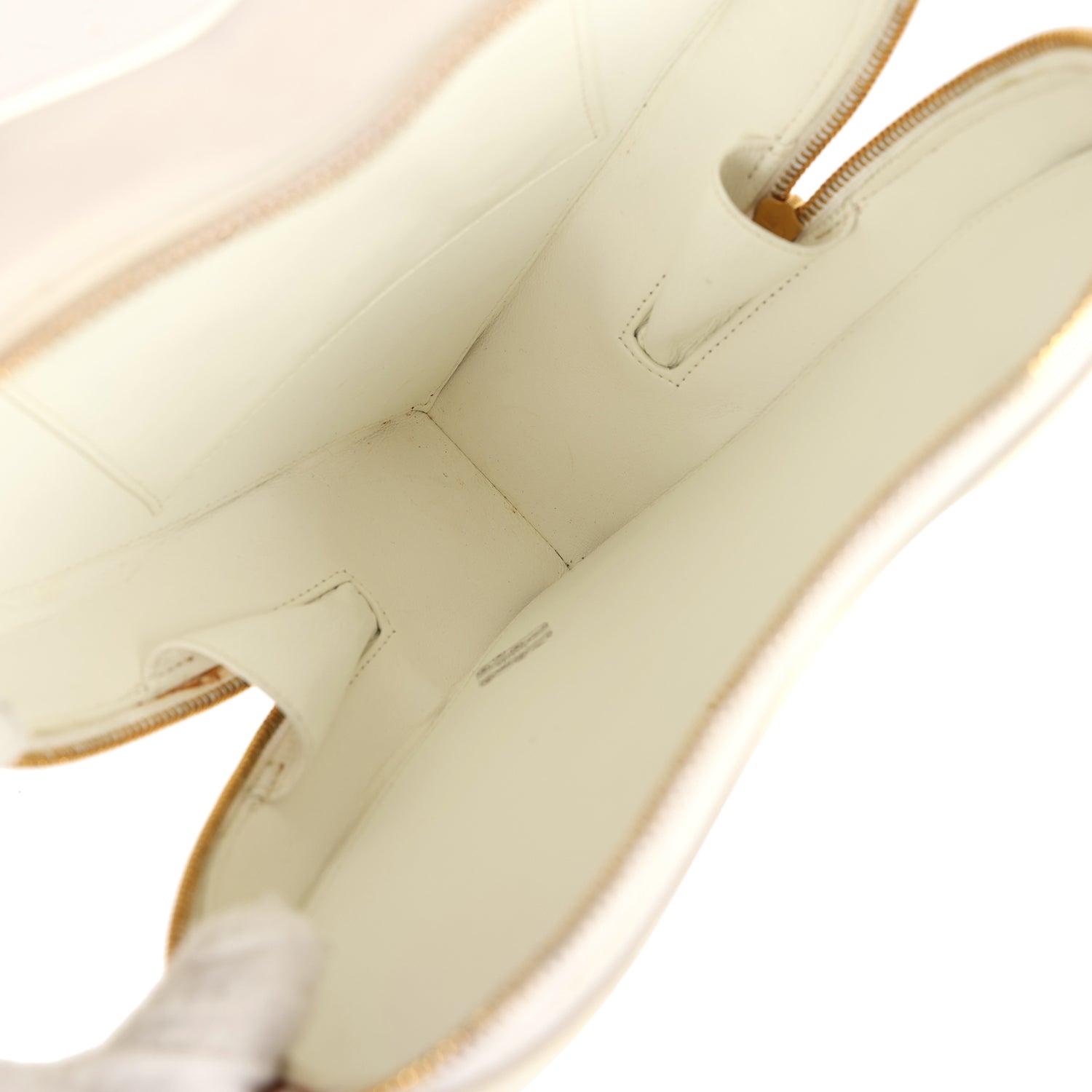Condition: Vintage; Excellent to Mint - This bag retains its shape. The exterior leather has some minor transfer marks on the patent. The patent leather on the top handle has wear. No plastic on the hardware but no major wear to the hardware. The interior is clean overall but has a few small marks towards bottom of bag.
