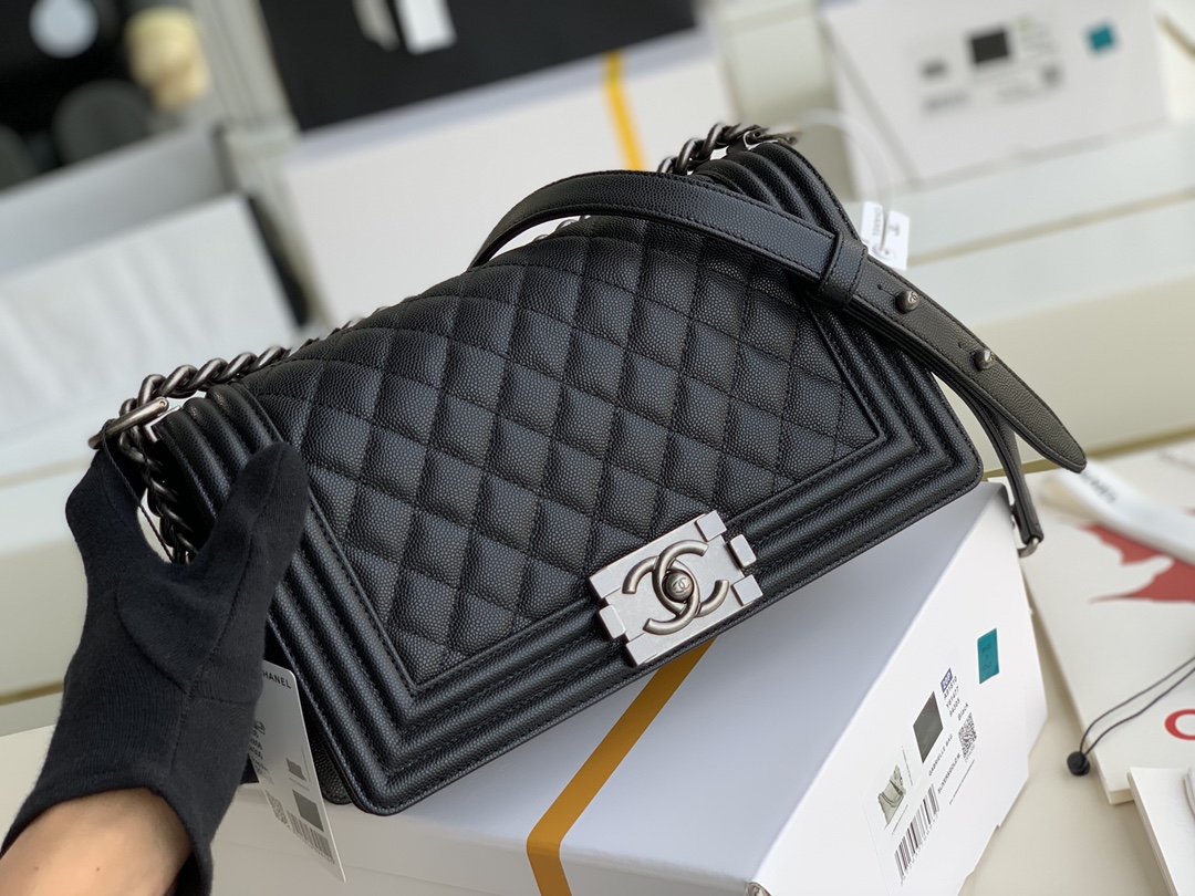 Ch@nel Boy Bag-Caviar-25CM