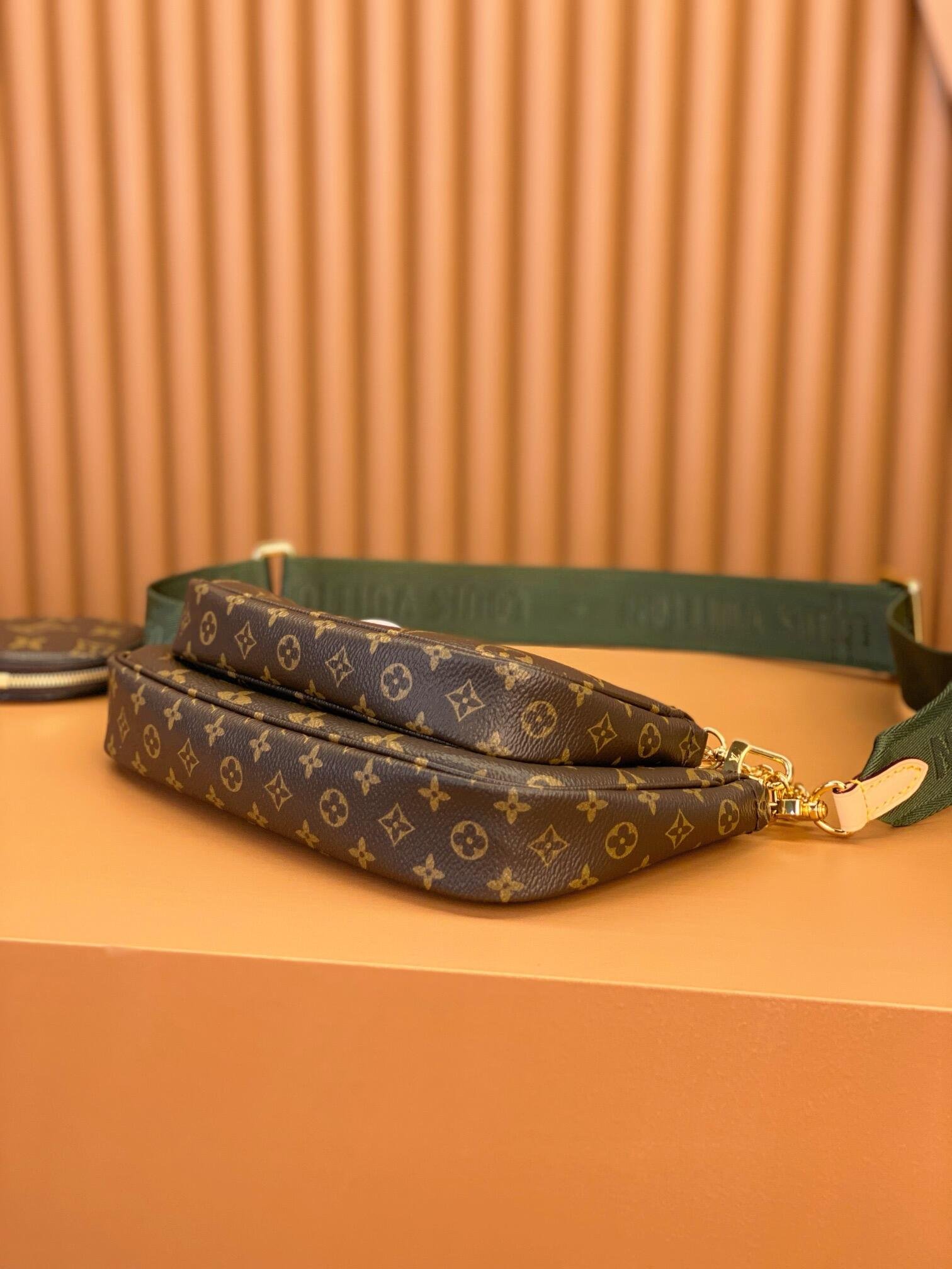 The Multi Pochette Accessoires is a hybrid cross-body bag with multiple pockets and compartments that brings together a Pochette Accessoires, a Mini Pochette Accessoires and a Round Coin Purse. Fashioned from Monogram canvas with a mini Monogram pattern on the sides of the two pochettes, it has both a removable gold-tone chain and an adjustable Louis Vuitton inscribed Jacquard strap for multiple carrying options.