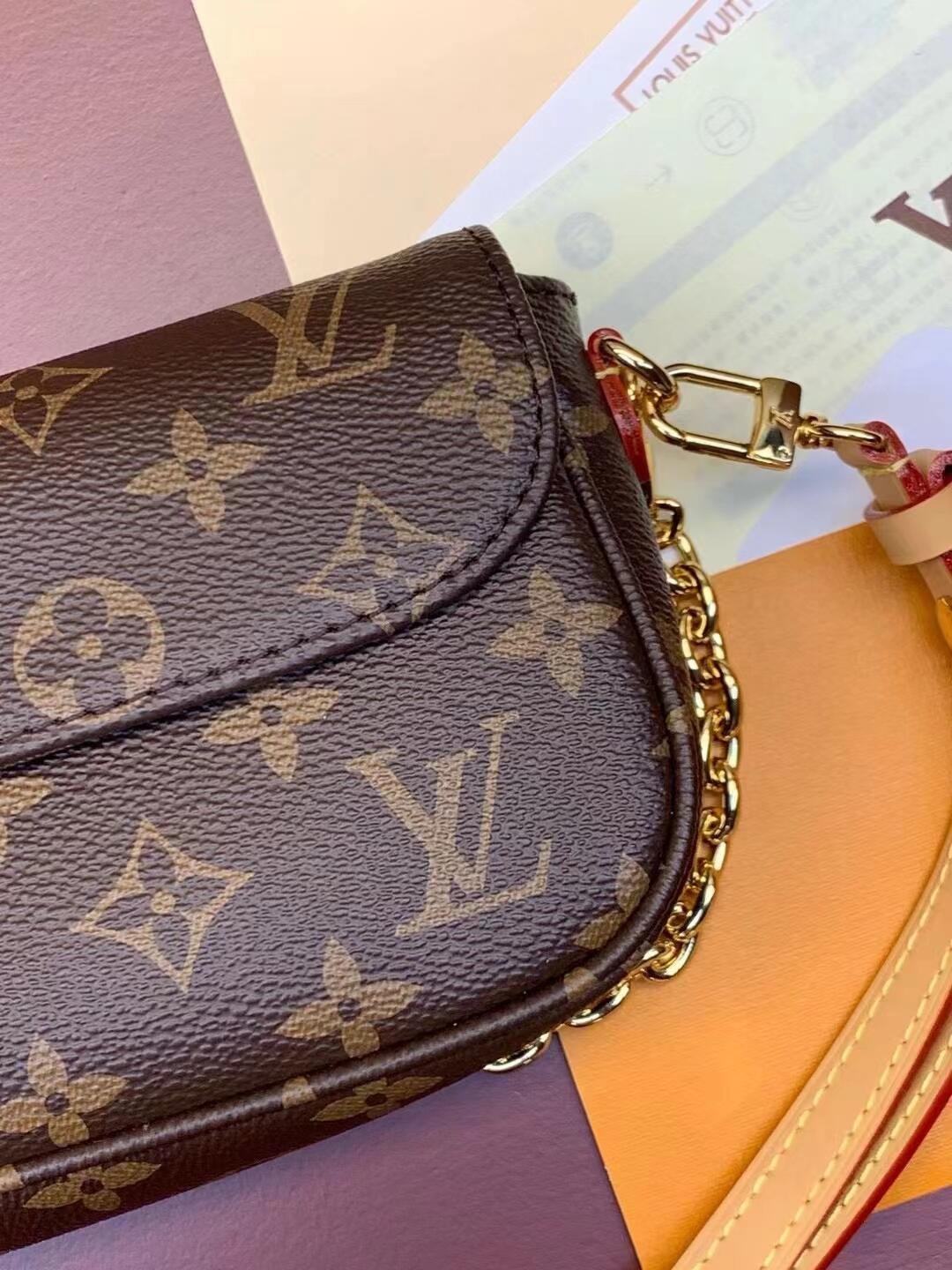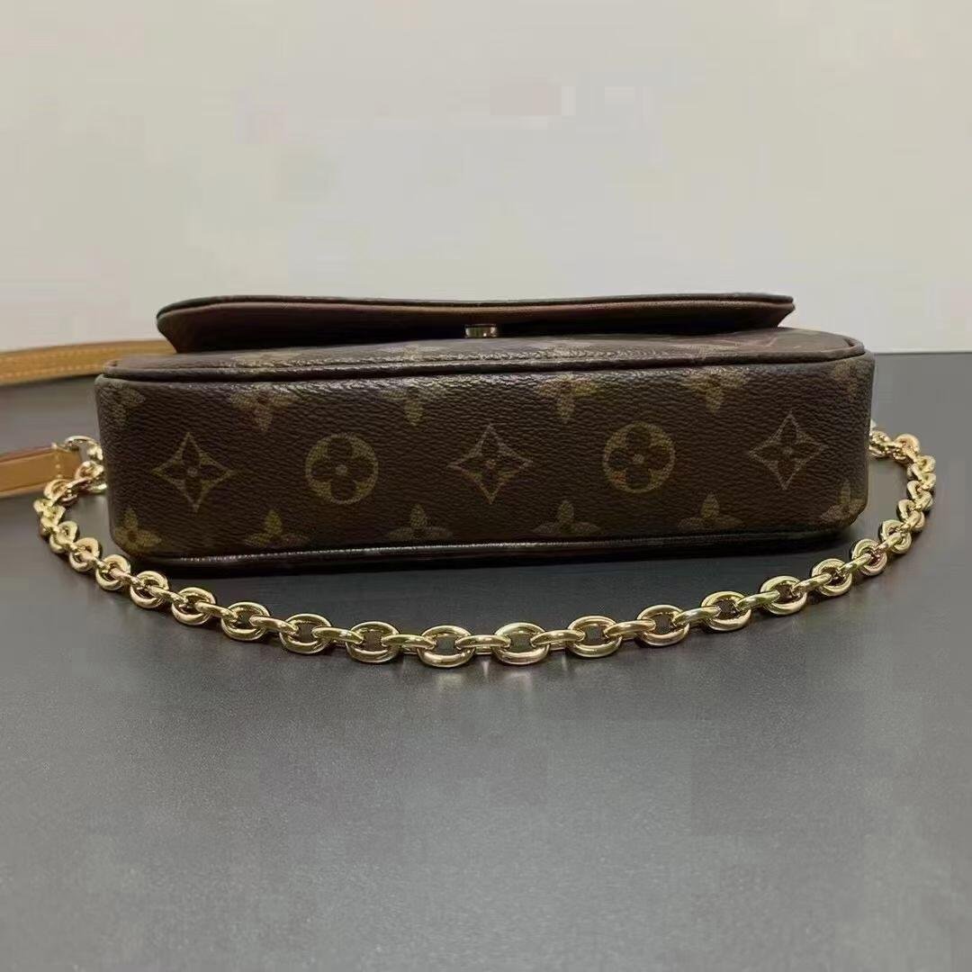 Inspired by the Sac Recoleta handbag from the 2000’s, the on-trend Wallet On Chain Ivy bag is fashioned from Monogram canvas. The removable gold-color chain allows short-shoulder carry while the adjustable and detachable strap, in natural leather, enables cross-body and long-shoulder carry. Three card slots and a zipped inside pocket make it perfect for everyday essentials.