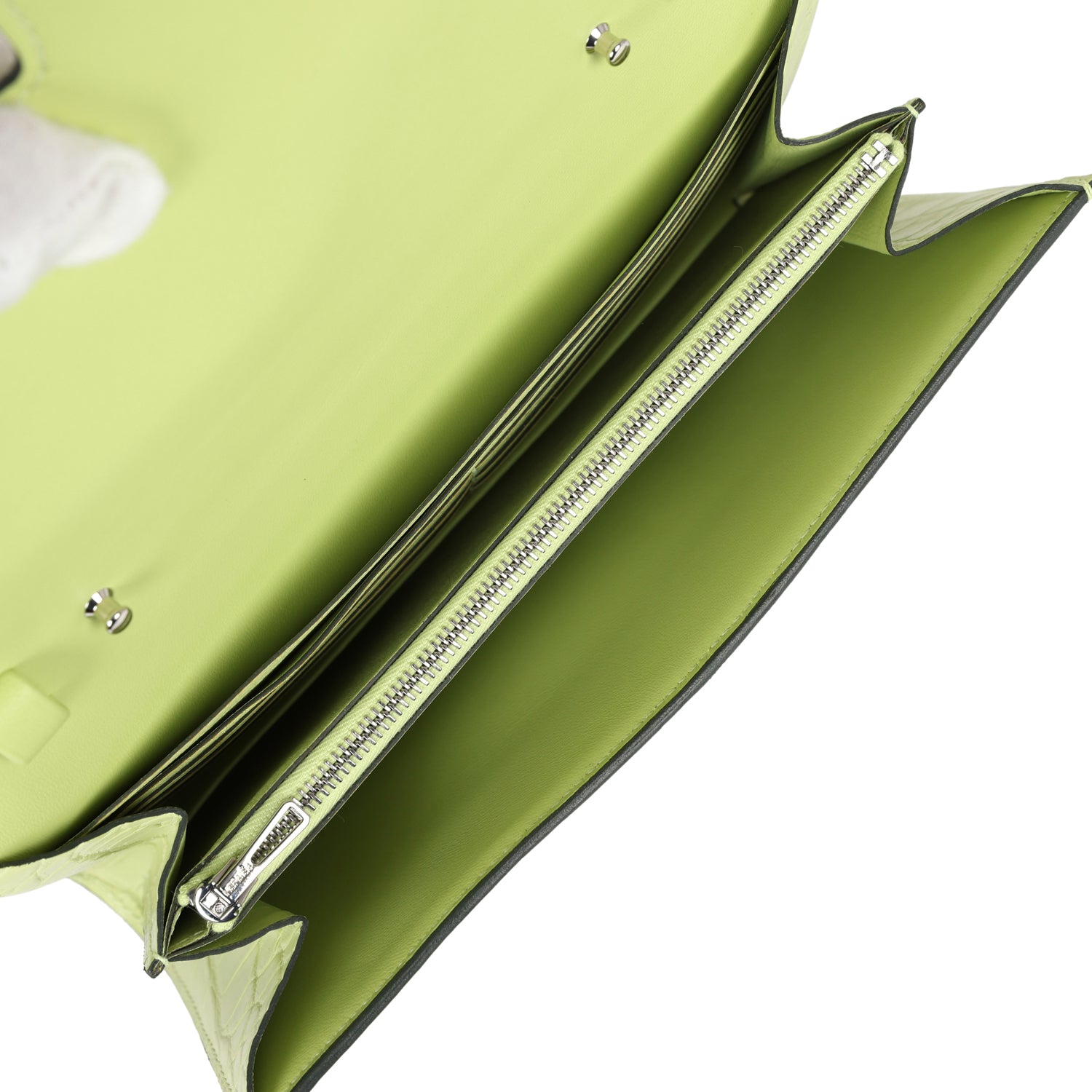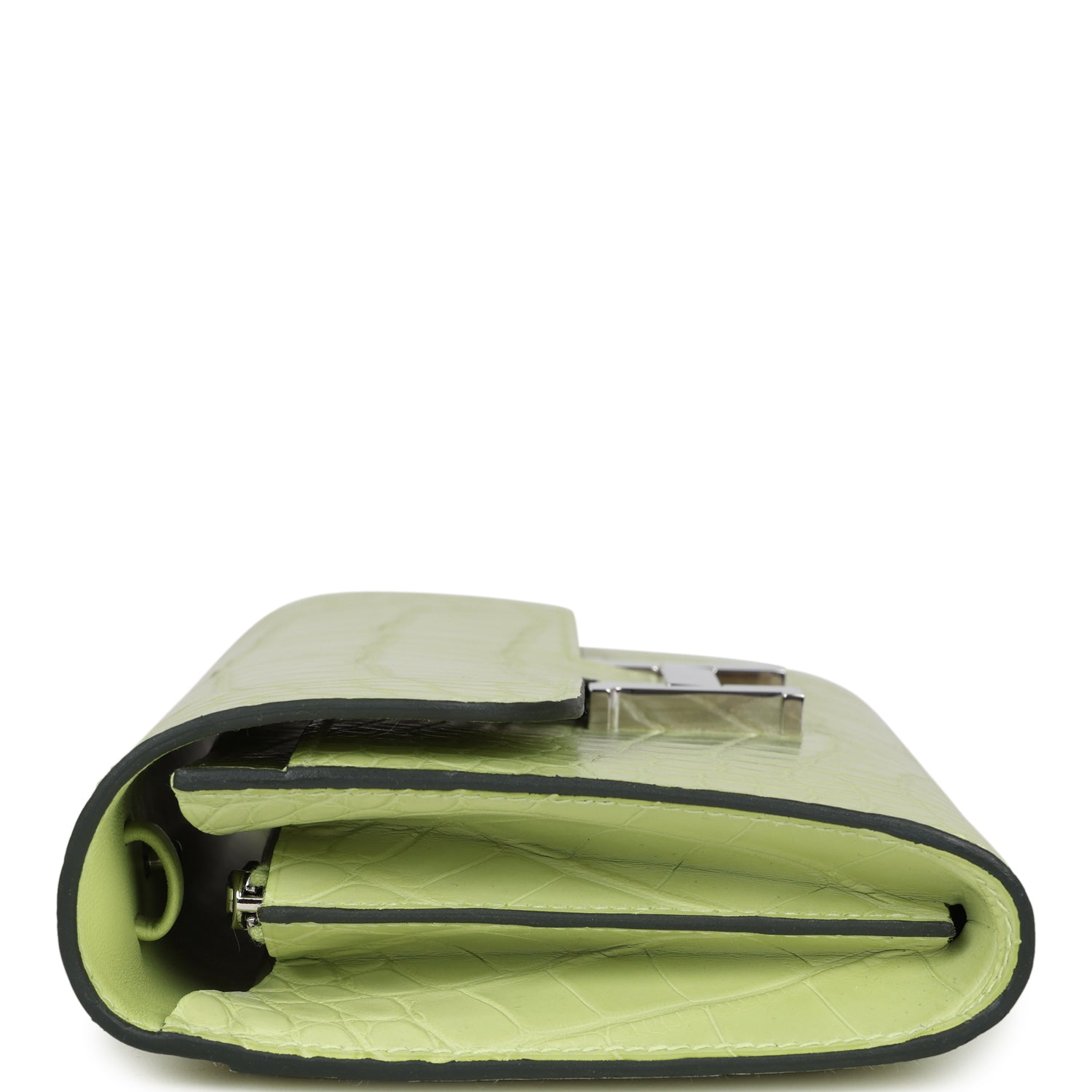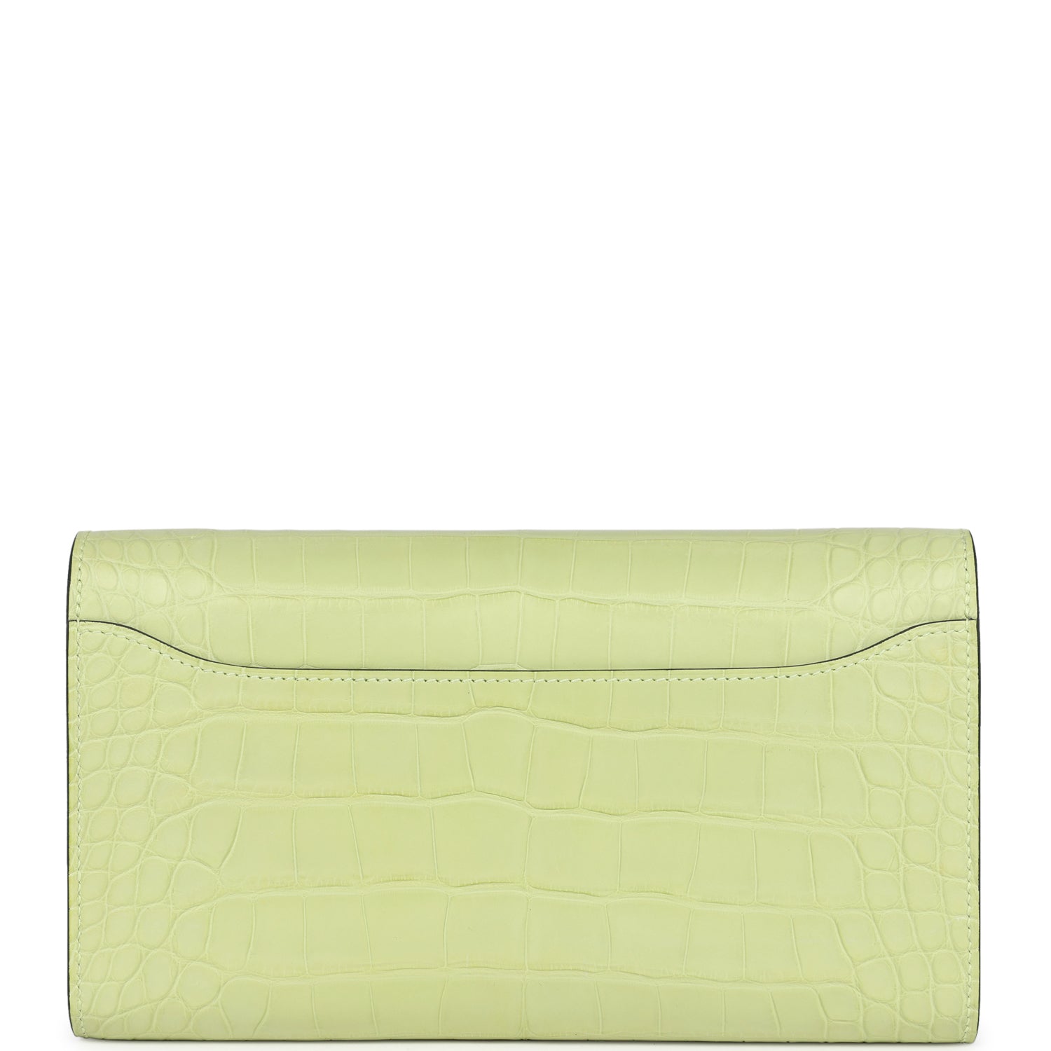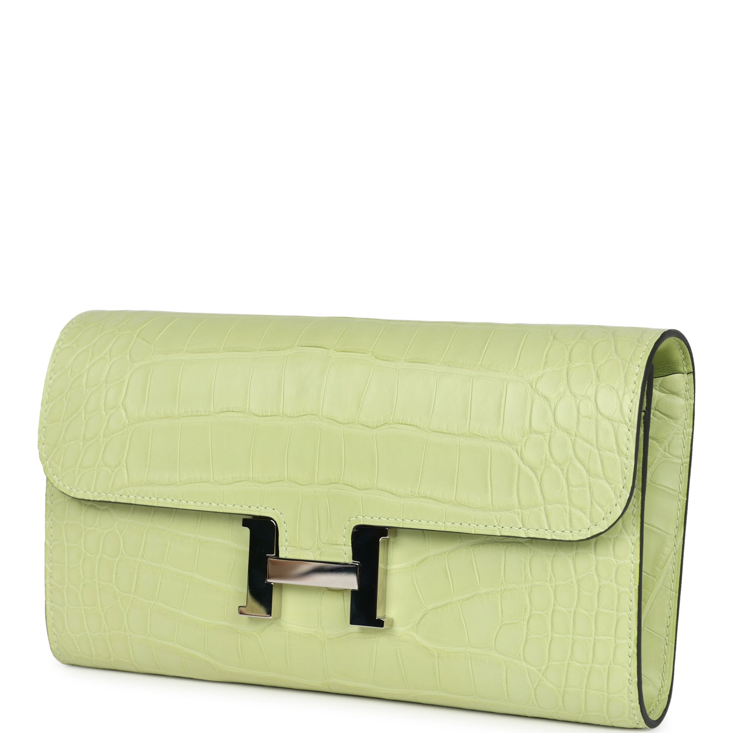 This Constance Wallet To Go is in Jaune Bourgeon Matte Alligator Mississippiensis with palladium hardware and has tonal stitching, metal "H" snap lock closure, open front compartment and removable crossbody strap.