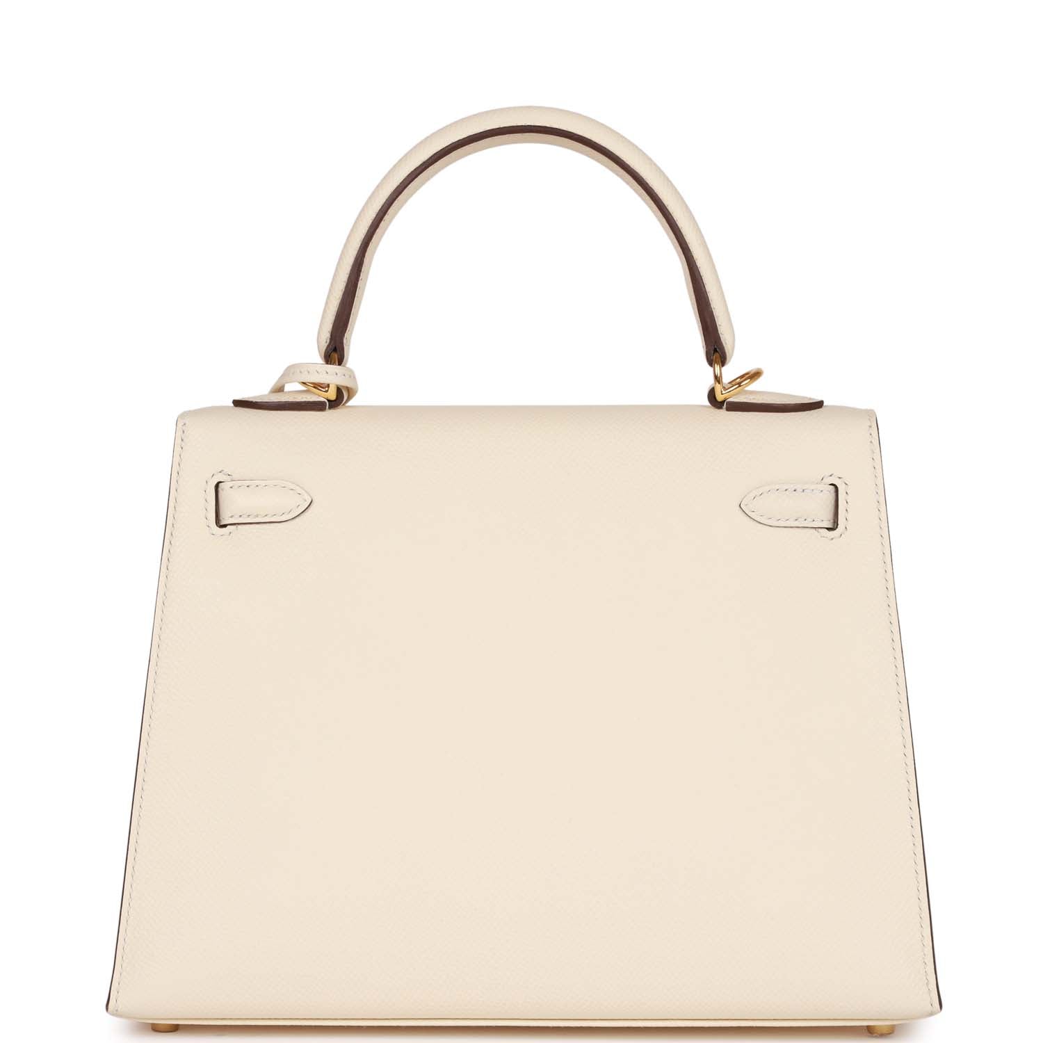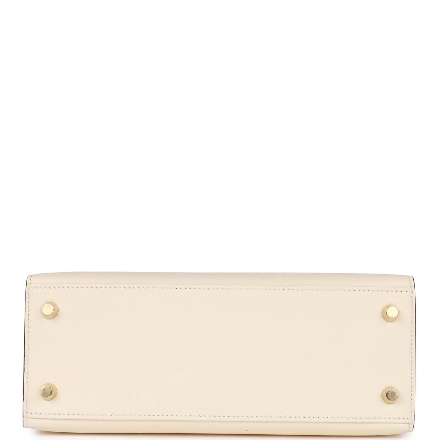This Kelly, in the Sellier style, is in?Nata epsom leather with gold hardware and?has?tonal stitching, front flap, two straps with center toggle closure,?clochette with lock and two keys, single rolled handle and removable shoulder strap.