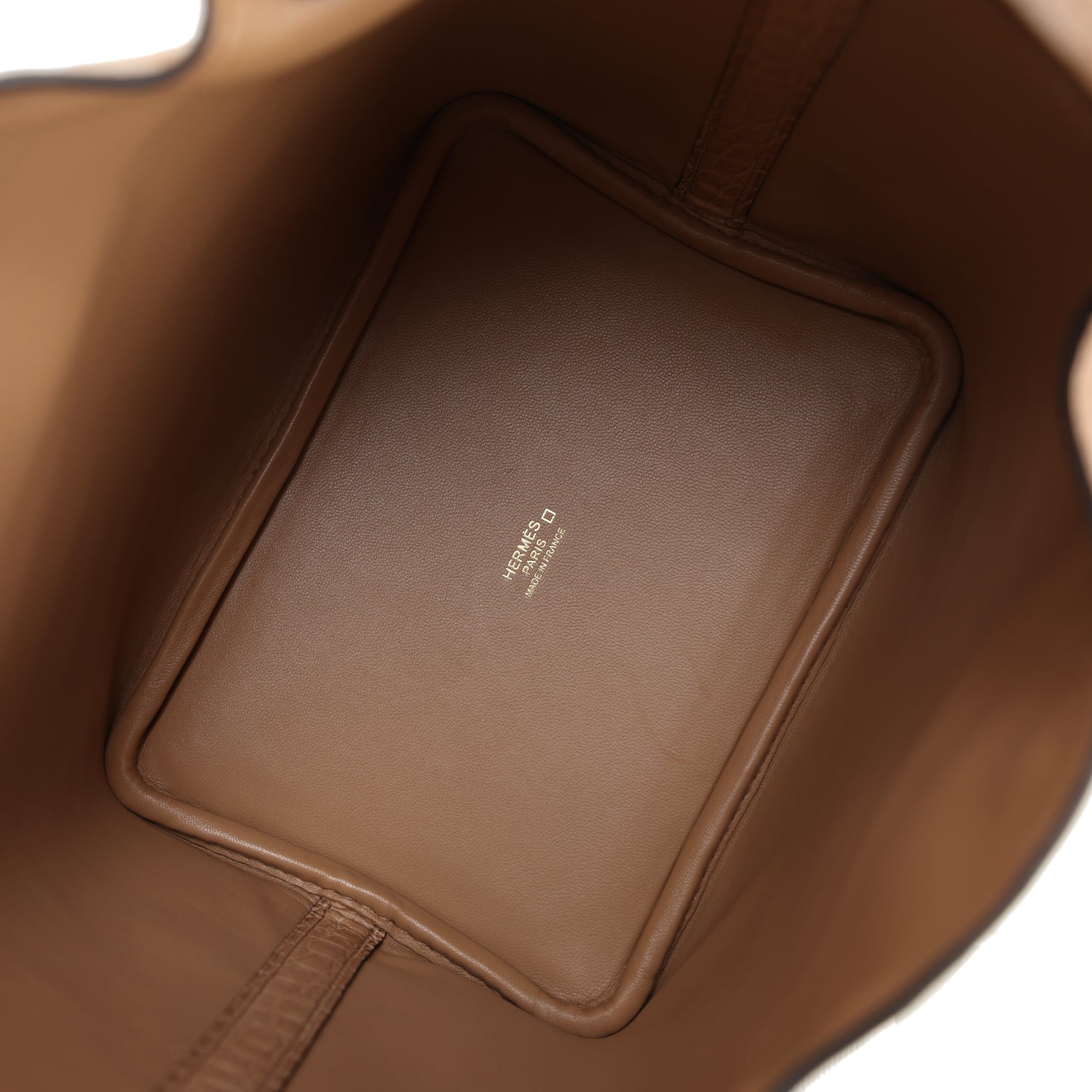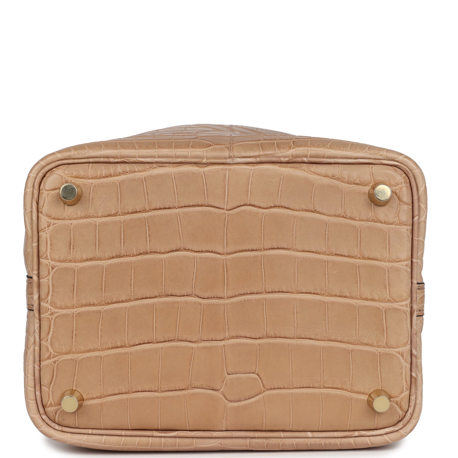 This Hermes Picotin Lock is in Chai Matte Mississippiensis Alligator leather with gold hardware, tonal stitching lock and two keys, and two top handles.
