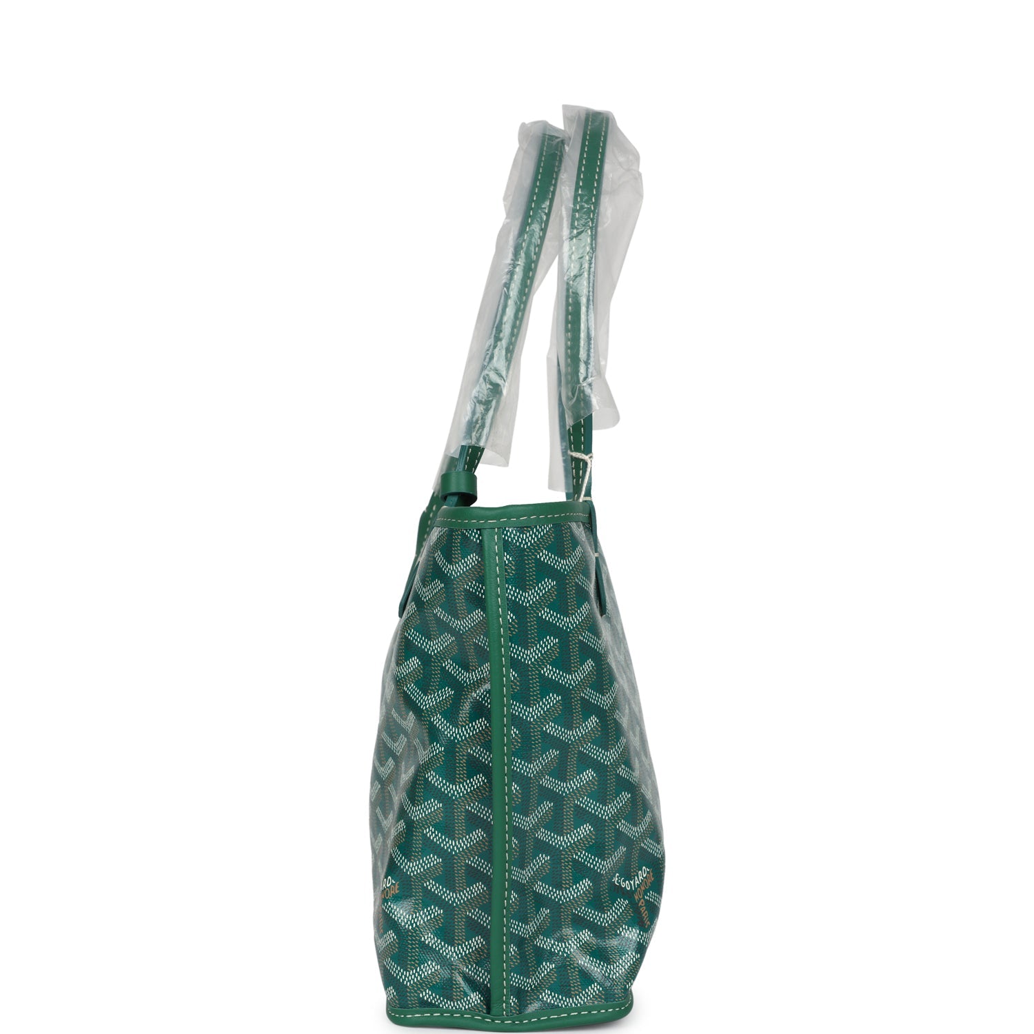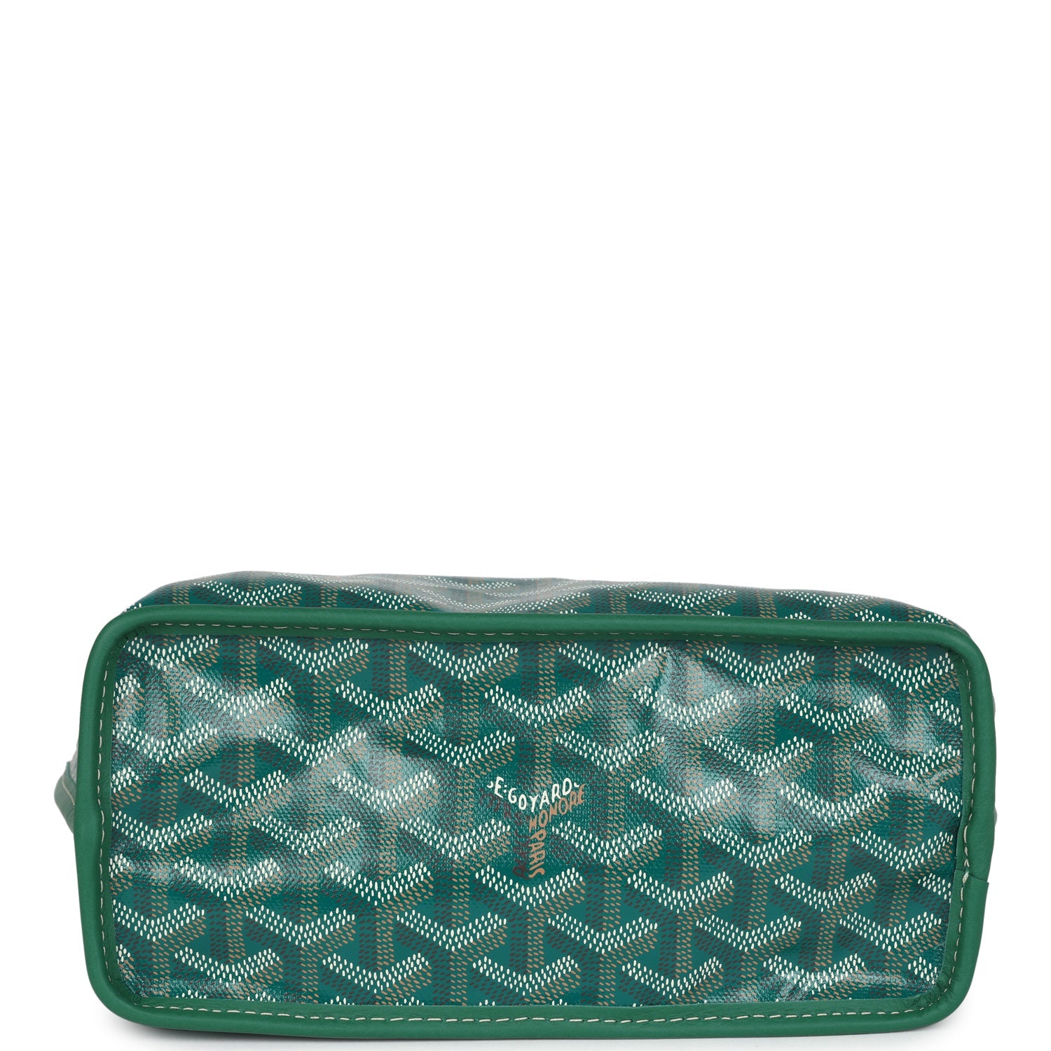 This?Anjou Mini bag is of?green Goyardine canvas with?palladium hardware, contrast stitching, green chevroches calfskin lining, and a detachable?green coin purse