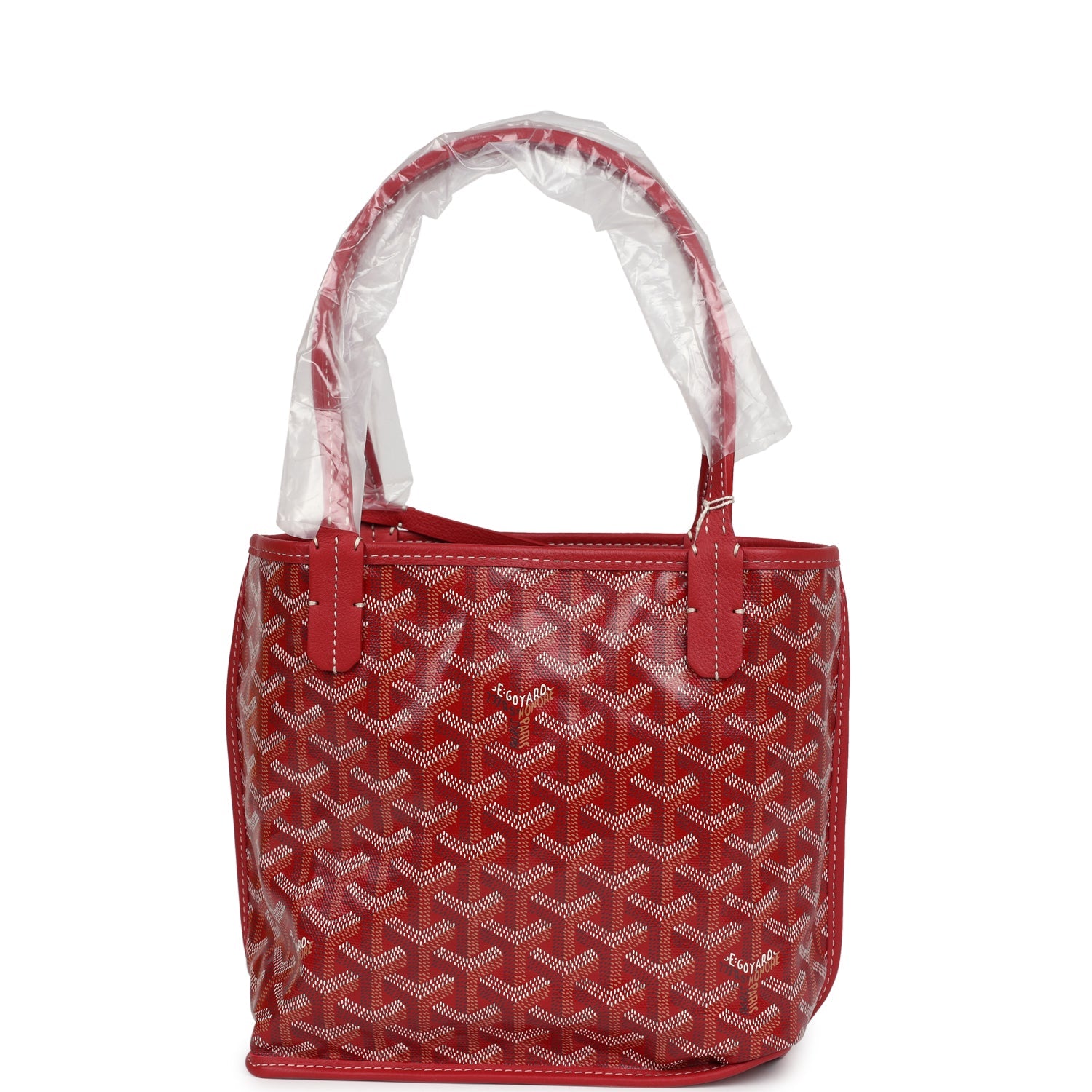 This Anjou mini reversible tote is in red goyardine canvas and leather with palladium hardware and features contrast stitching, calfskin and is reversible.