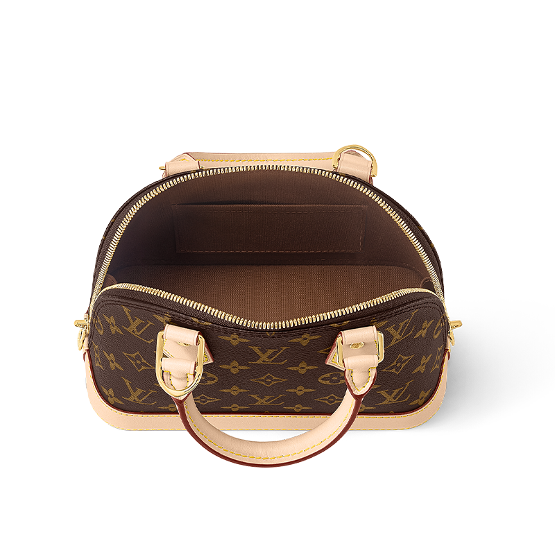 The Alma BB handbag traces its pedigree to an Art Deco original, introduced in 1934. Signature details impart a timeless elegance to this model crafted from iconic Monogram canvas: note the golden padlock and keys, two Toron handles and smart leather key bell. Fitted with a detachable and adjustable strap, this charming small bag is perfect for cross-body wear.