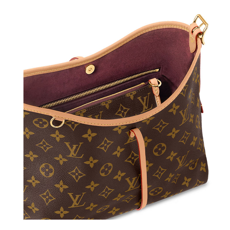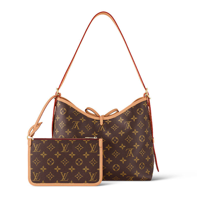 Combining allure with body-friendly design, the CarryAll PM handbag in Monogram canvas with natural leather trim is a go-everywhere city bag. Great storage capacity and a smartly designed interior, with two inside small flat pockets, makes it practical. A detachable zipped pouch, also in Monogram canvas, is attached to the bag by a leather strap.
