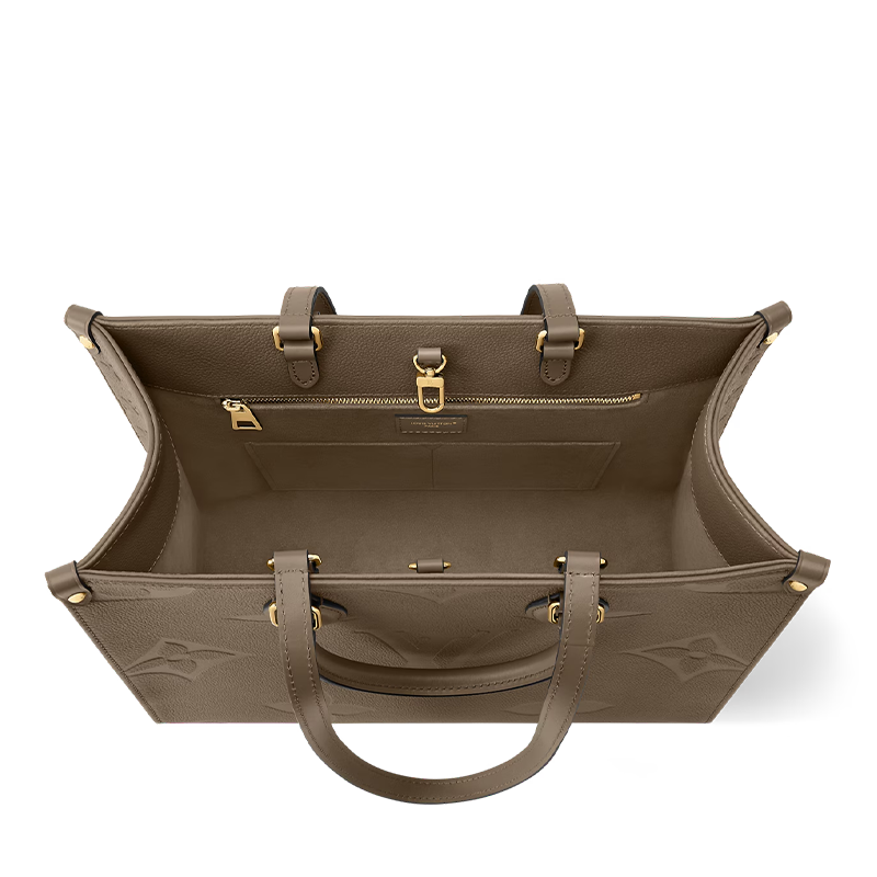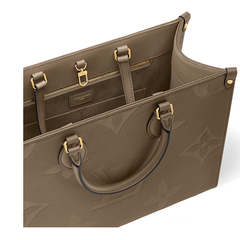 This seasonal edition of the OnTheGo MM is offered in a timeless Smoke colorway that complements any outfit. It is crafted from signature Monogram Empreinte leather, accented with cowhide trims and with sophisticated gold-toned hardware. The capacious design is sized to fit a laptop amongst other daily essentials, and includes several pockets, as well as a removable name tag with a mirror.