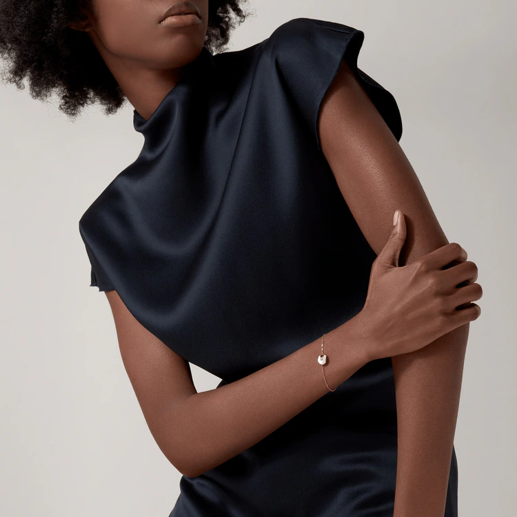 Amulette de Cathtrtier bracelet, XS model, 18K yellow gold (750/1000), set with a brilliant-cut diamond of 0.02 carats, white mother-of-pearl. Diameter of motif: 12 mm (for size 17).