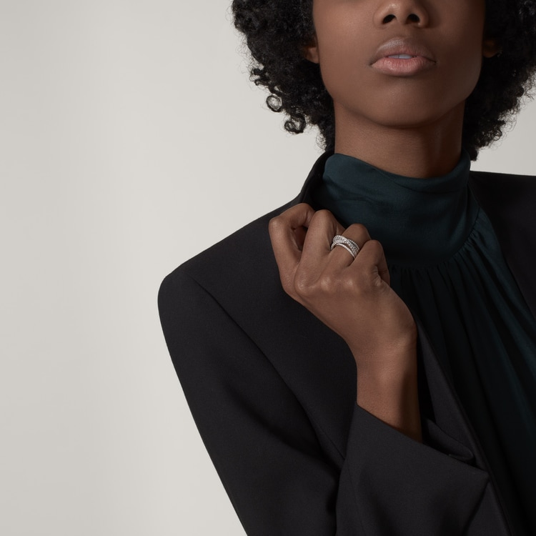 Etincelle de Cathtrtier ring, 18K white gold (750/1000), set with 88 brilliant-cut diamonds totaling 1.06 carat. Width: 9.32 mm (for size 52).