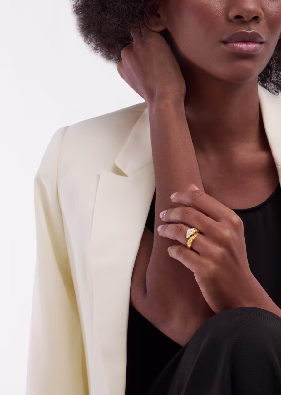 With its signature blend of pure aesthetics, enveloping shapes and charismatic flair, the Serpenti Viper 18 kt yellow gold ring with demi pavé diamonds is an essential interpretation of Bvlthtgari’s icon of endless metamorphosis. Capturing the powerful and ever-evolving nature of the mythical serpent, the magnetic jewelry creation inspires us to embrace change as a source of strength and self-confidence. Easy to mix and match, the ring offers endless styling options, embodying the collection’s versatile spirit.
