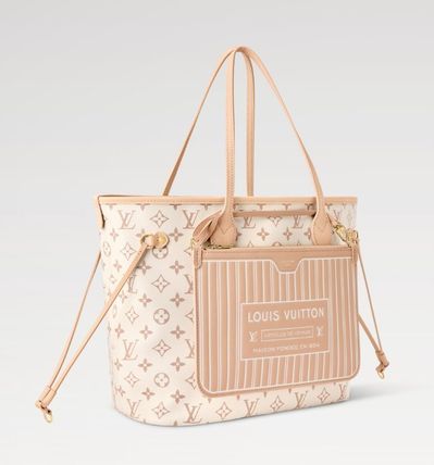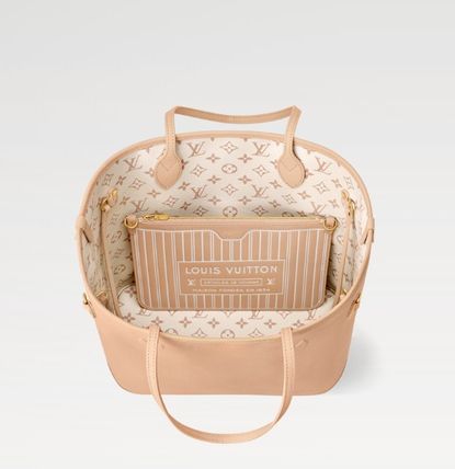 The Louis Vuitton Neverfull Inside Out MM is a reversible tote bag that excels in diverse settings, from business occasions to casual weekend outings. One side features elegant Monogram Dunne canvas, while the other showcases supple hazelnut-colored leather, offering the best of both worlds in one versatile piece. Elegant gold-tone hardware adds a simple yet sophisticated touch. Adjust the silhouette using the side laces and hook to create different looks depending on the occasion. The spacious interior easily accommodates all your daily essentials. Plus, it comes with a removable zippered pouch for organizing small items, making it exceptionally practical.
